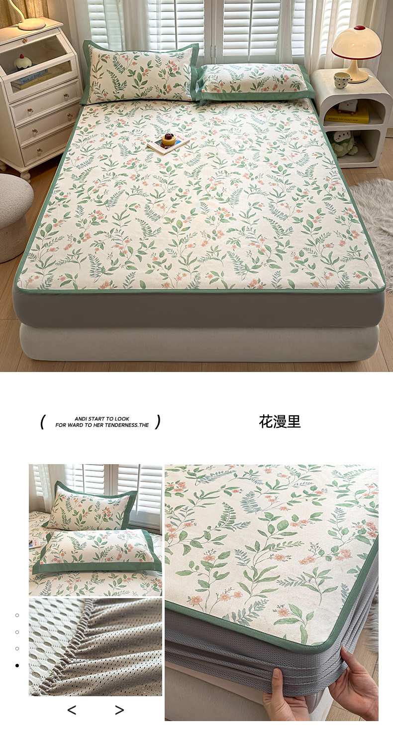 商品名称:花言狐语 2025新款真冰藤印花床笠款凉席 花漫里