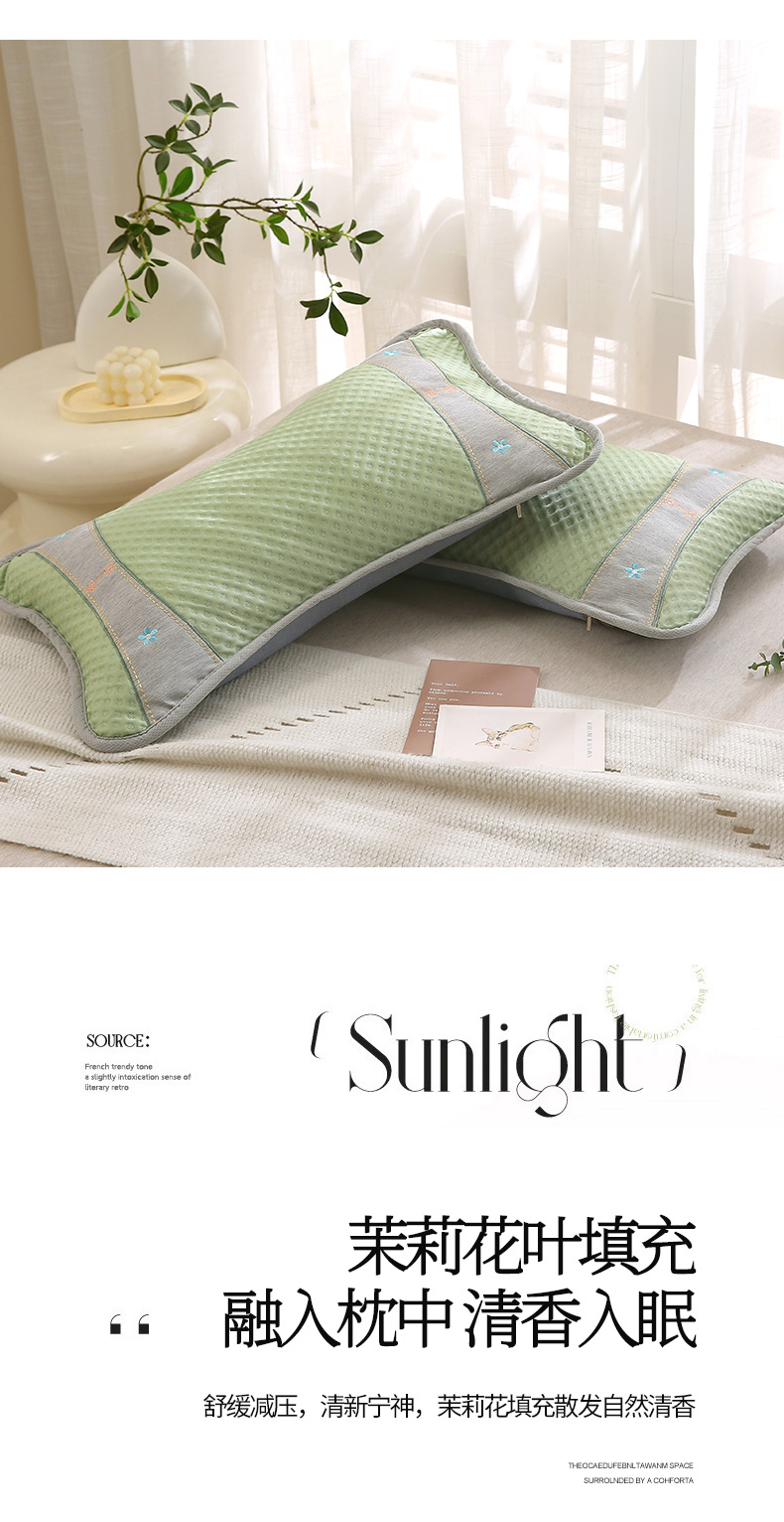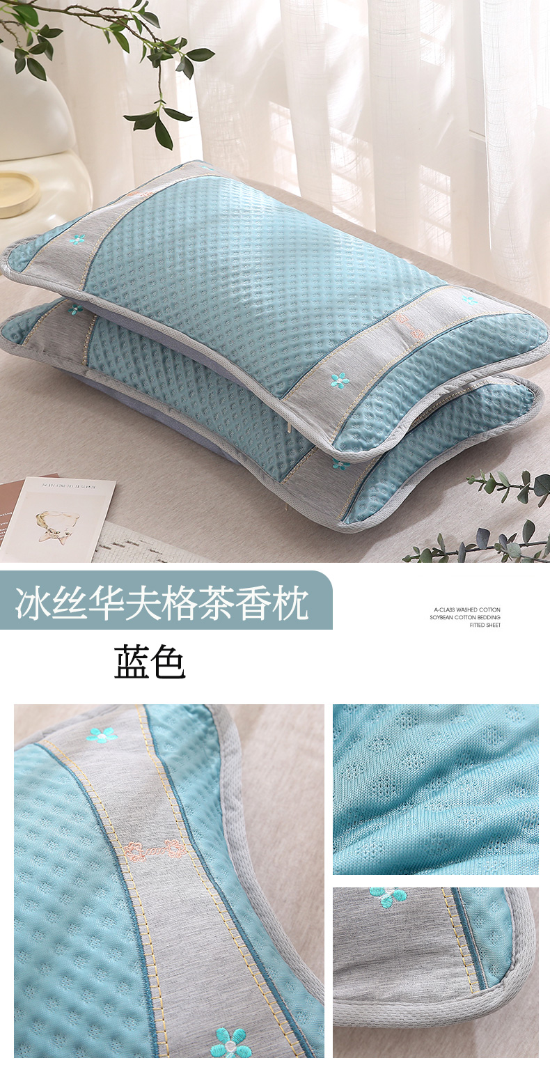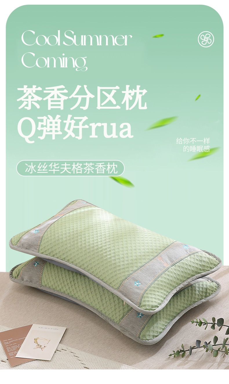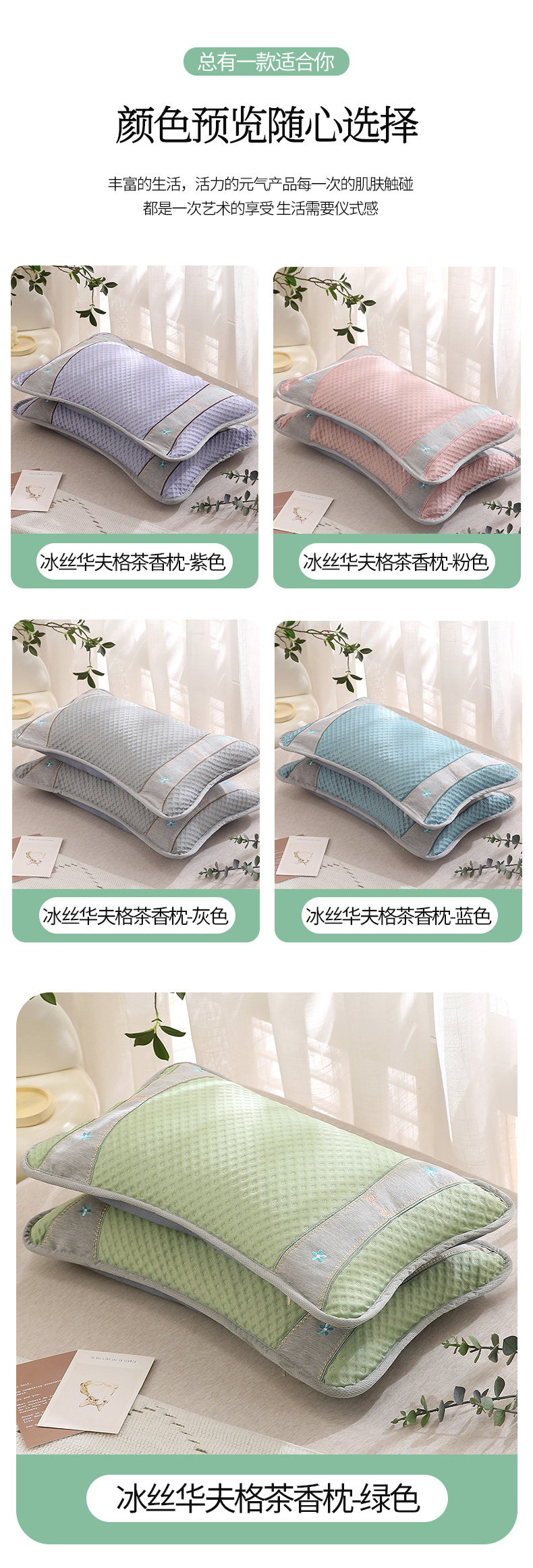商品名称:纽乐家纺 2025夏季夏凉茶香枕头冰丝凉感华夫格凉豆豆茶叶茉莉花枕头枕芯 冰丝华夫格茶香枕-绿色 35x55cm/只