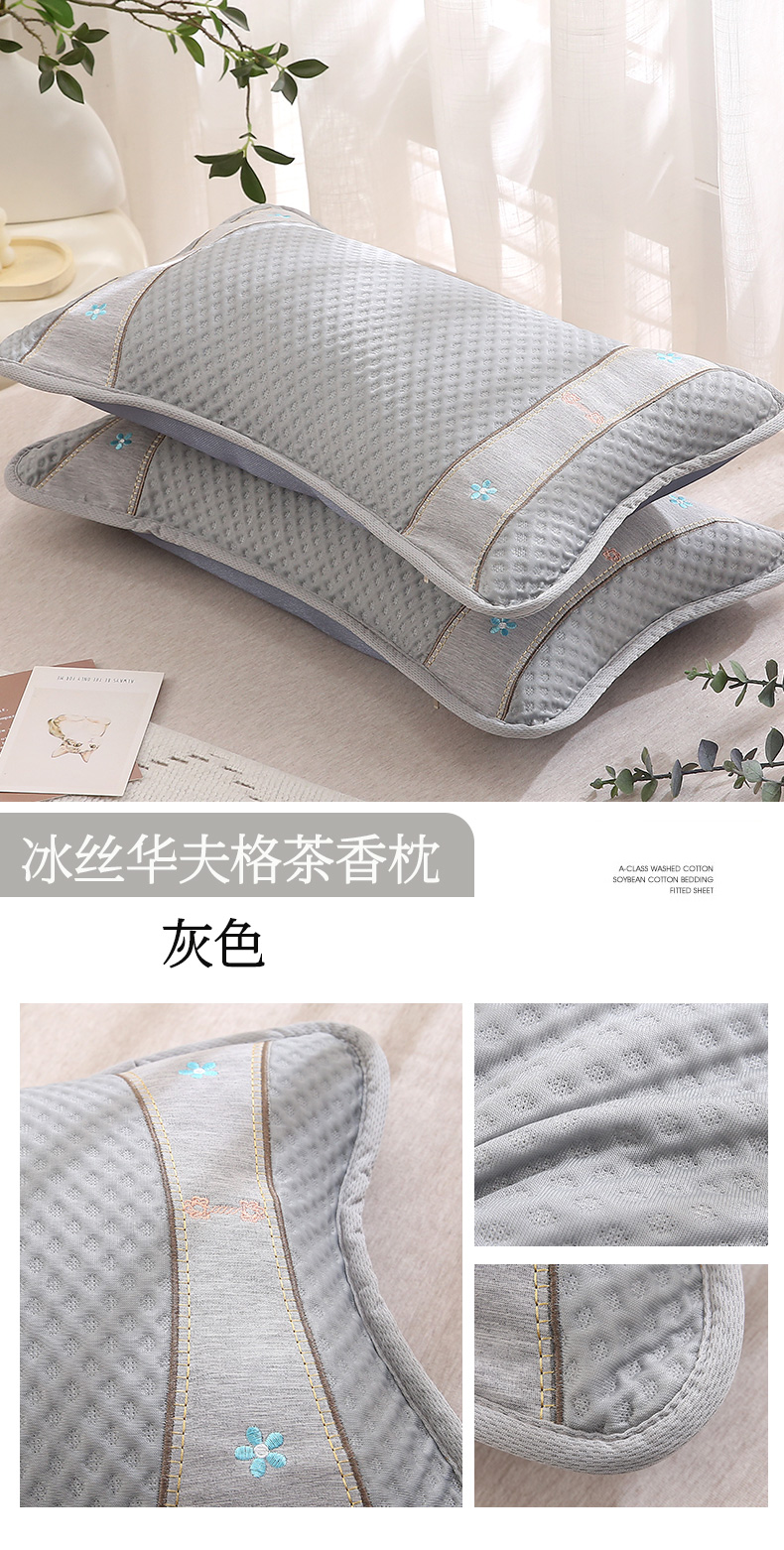 (总)纽乐家纺 2025新款夏凉凉感五叶草冰藤茶香茉莉花枕芯助眠枕头,五叶草冰藤茶香枕-灰色35*55cm/只,五叶草冰藤茶香枕-棕色35*55cm/只