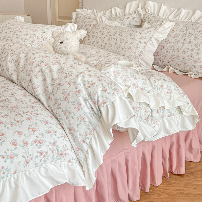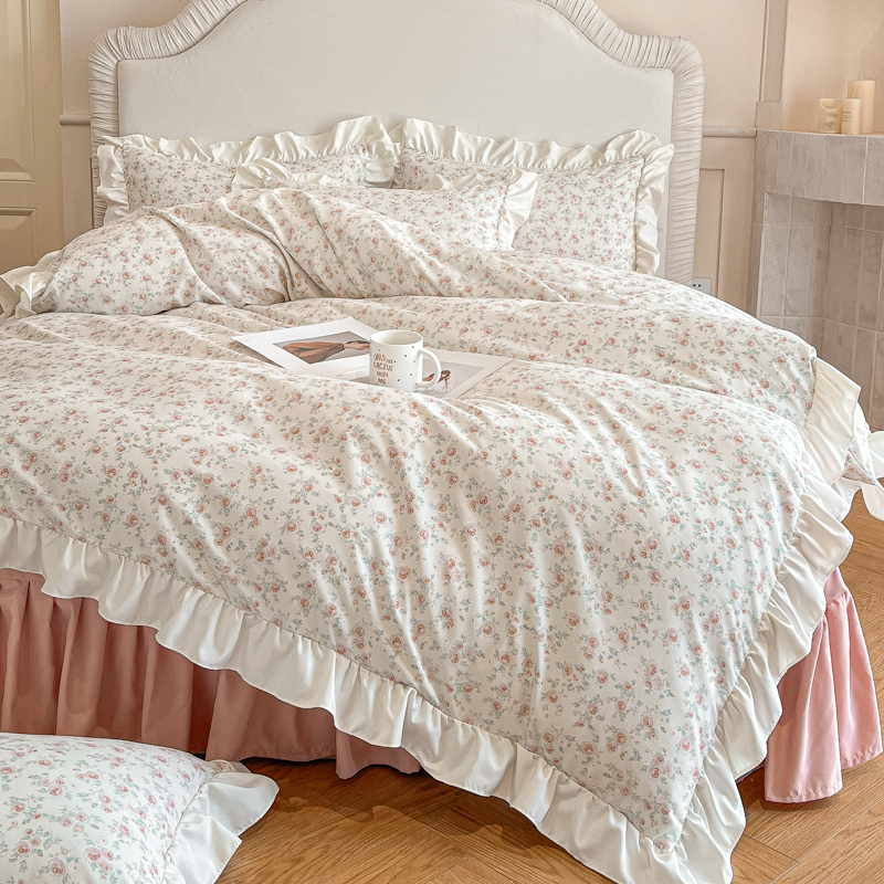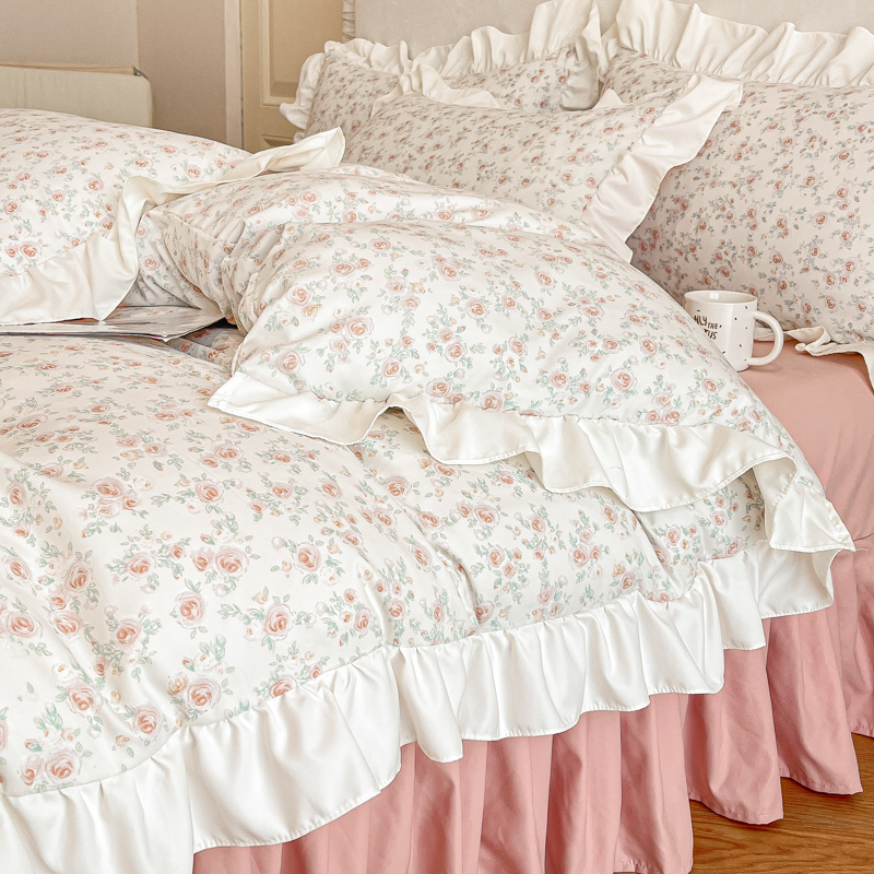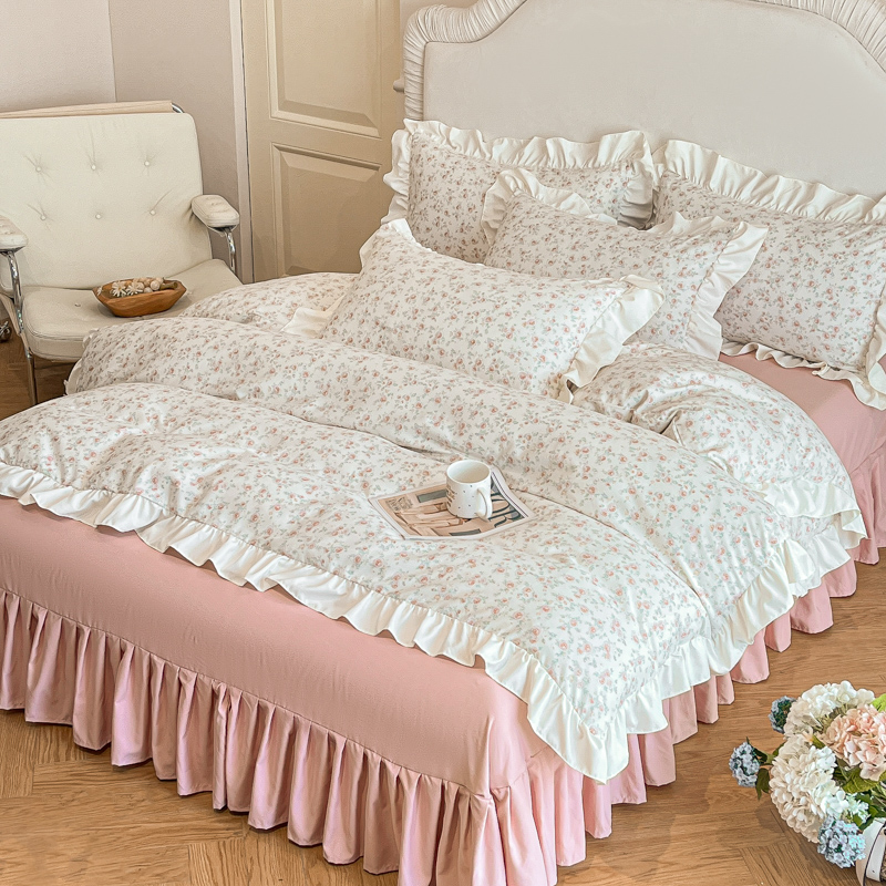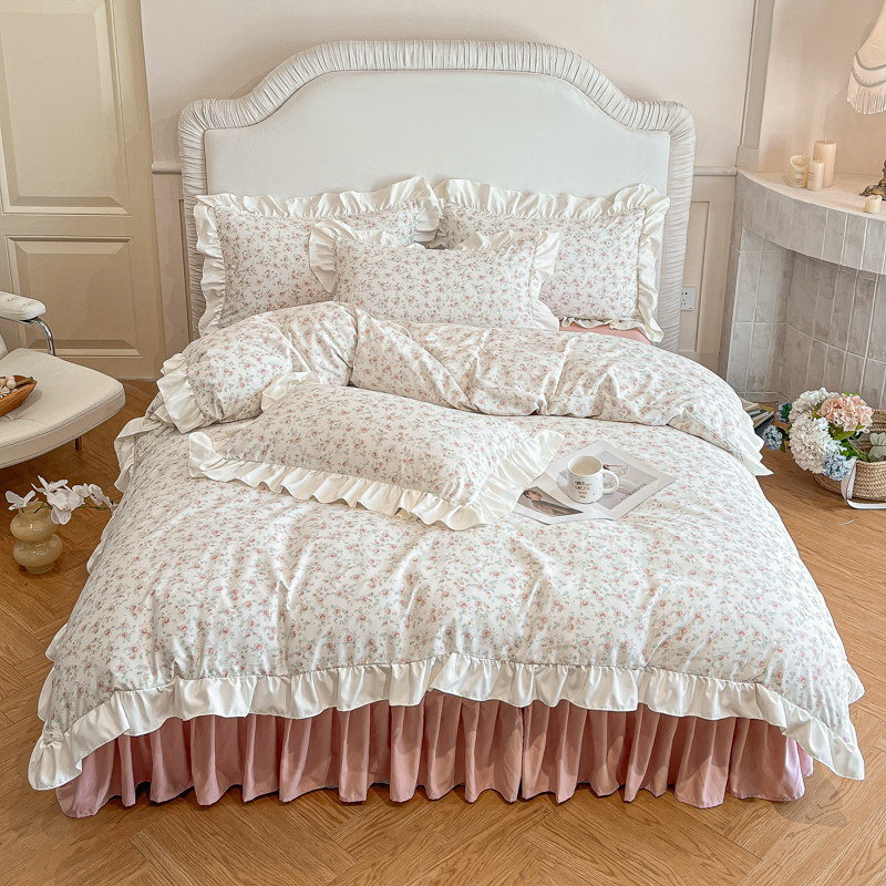 绘萱家居 2025新款舒氧°柔糯棉花边床裙款四件套(全消光细纱仿全棉纯棉)可可小姐-玉
