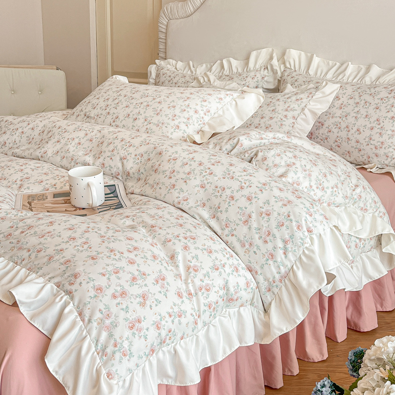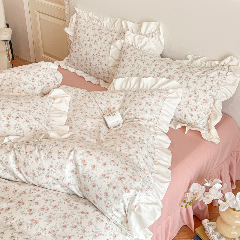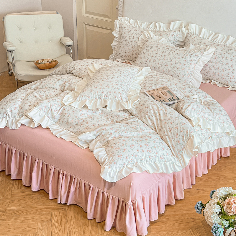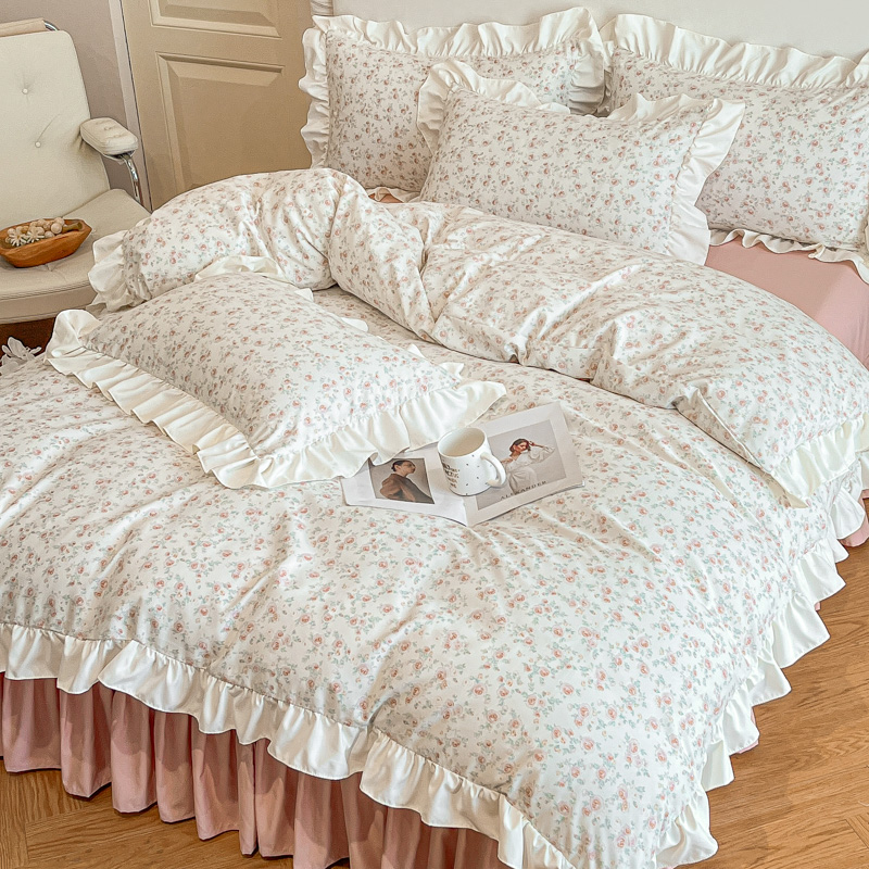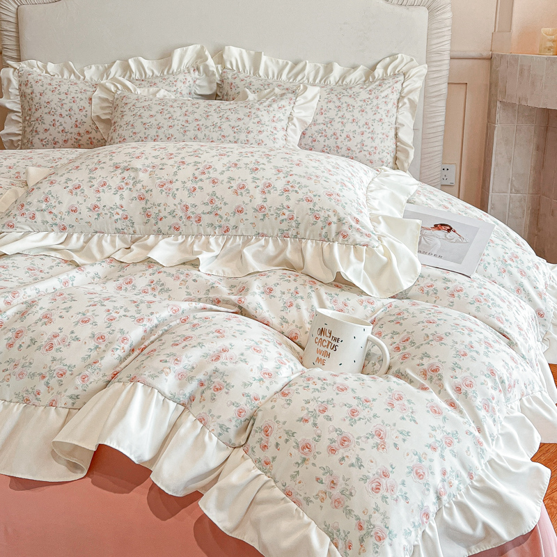 绘萱家居 2025新款舒氧°柔糯棉花边床裙款四件套(全消光细纱仿全棉纯棉)可可小姐-玉
