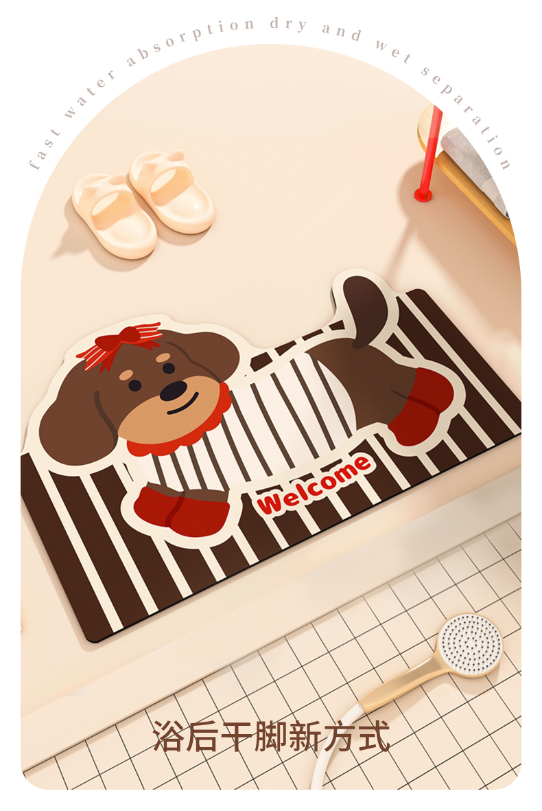 商品名称:卡初家居(原微来)2025新款双面防滑浴室硅藻泥地垫-小狗 G-655【小狗】
