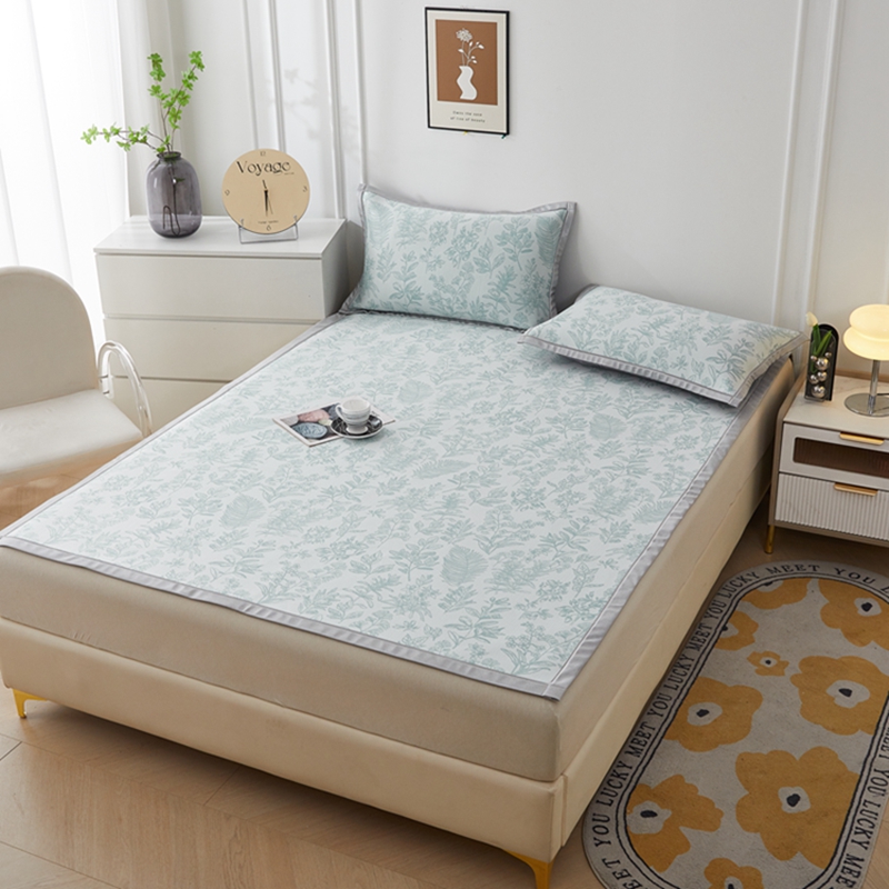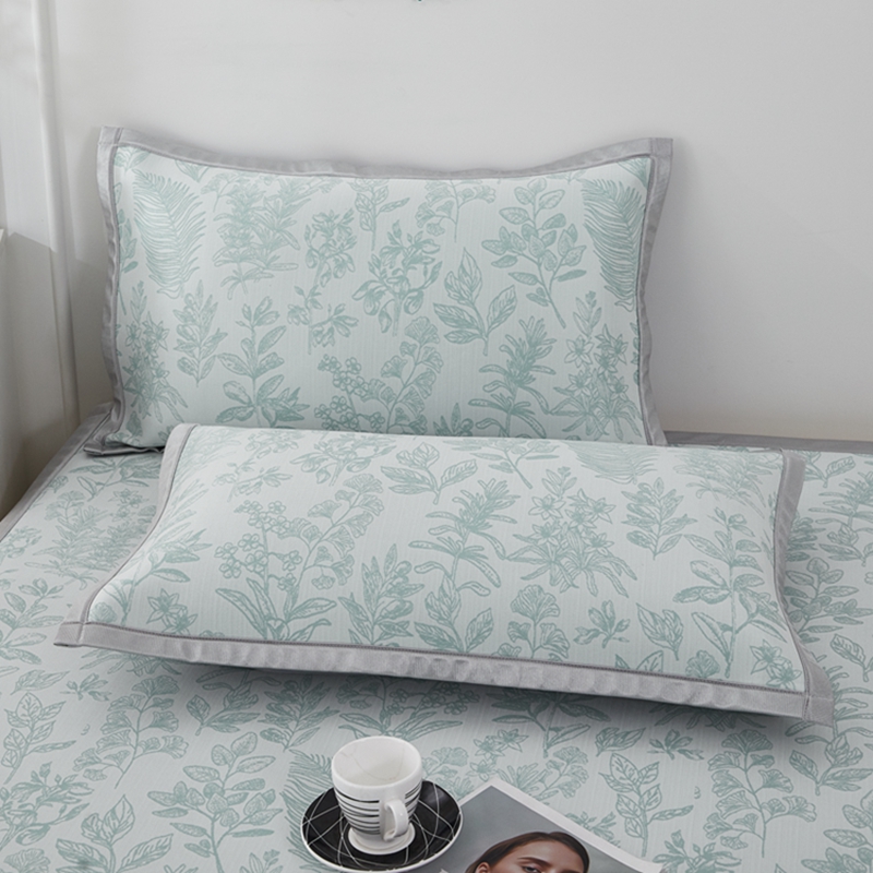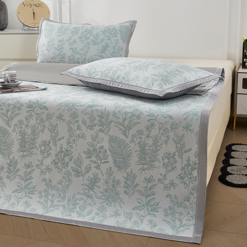 商品名称:曲宿家纺 2025新款高分子色织提花软凉席系列 葱郁-湖蓝
