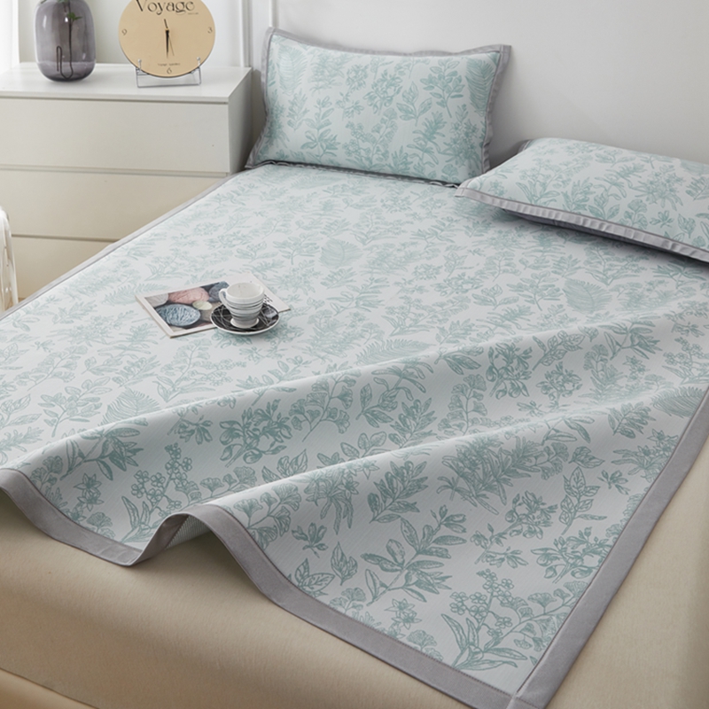 (总)曲宿家纺 2025新款高分子色织提花软凉席系列,丛林-粉,丛林-果绿,丛林-湖蓝,丛林-灰