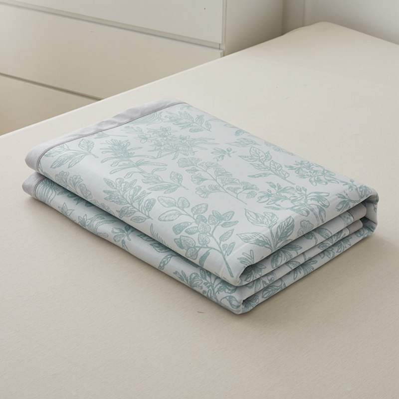 曲宿家纺 2025新款高分子色织提花软凉席系列 葱郁-湖蓝