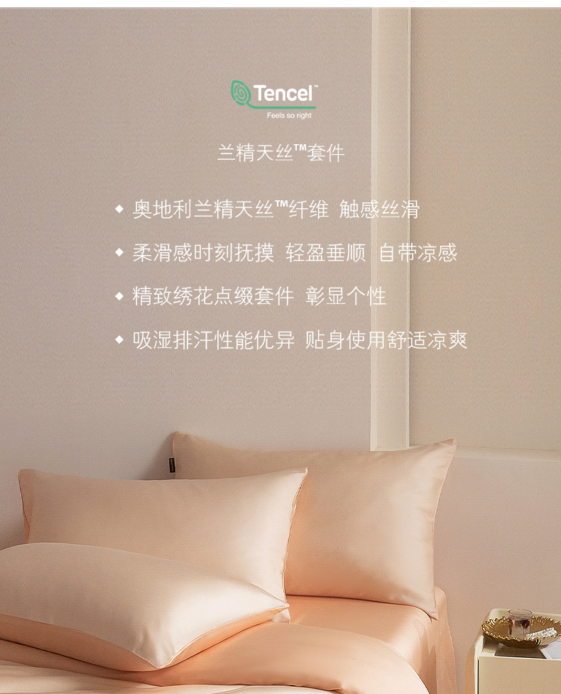 当前位置: 91家纺网 > 商品网购 > 床品套件 > 四件套 > 莱赛尔四件套 > 云栖家居 202560支兰精天丝纯拼色四件套 芝芝白桃