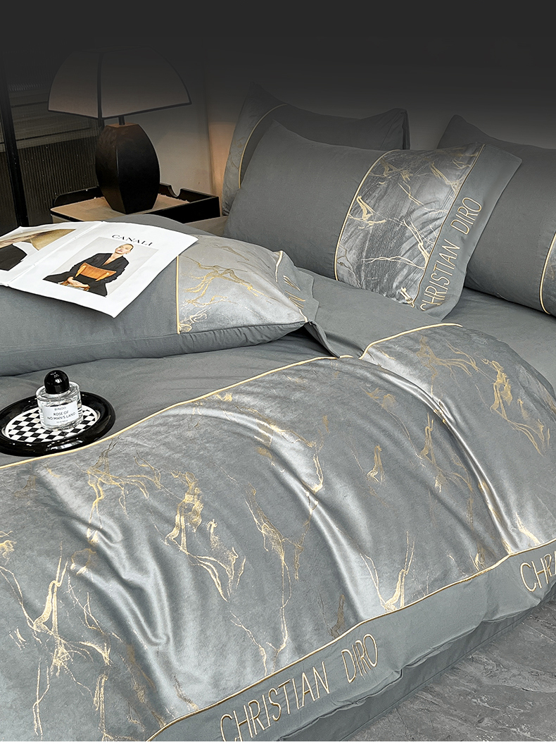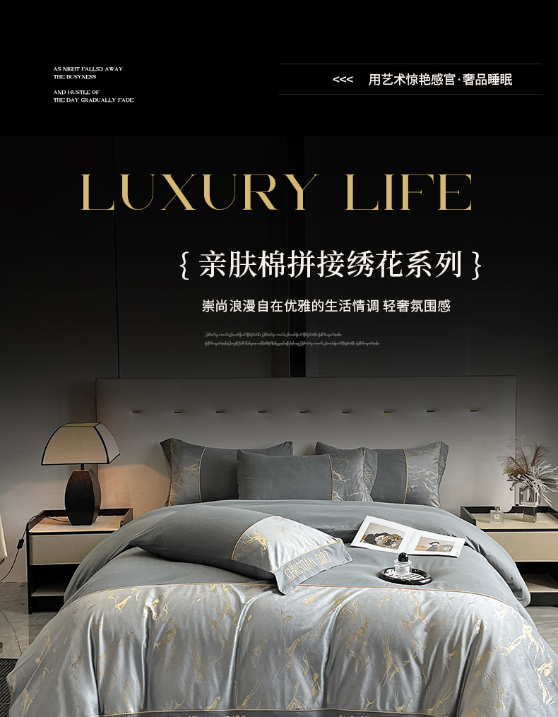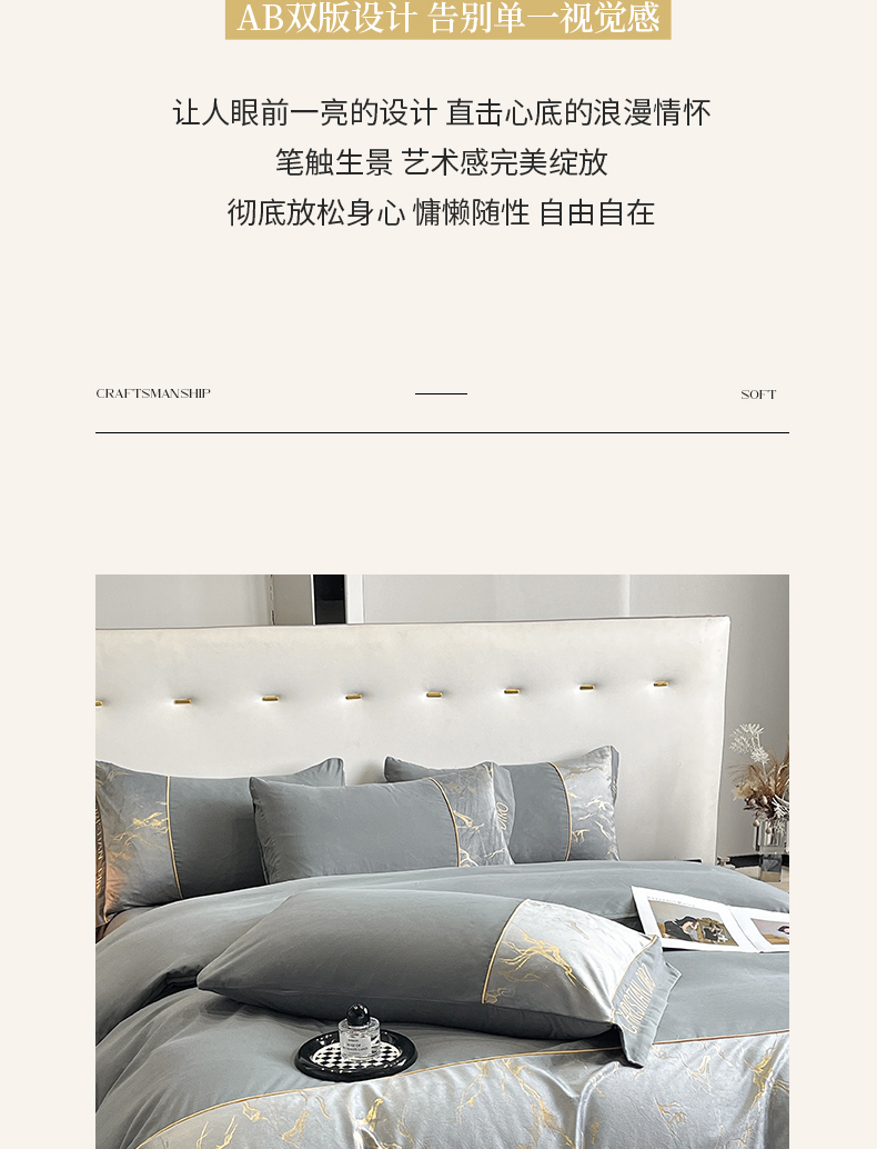 苏源家居 2025新款轻奢亲肤棉刺绣烫金工艺四件套 水墨画-高级灰