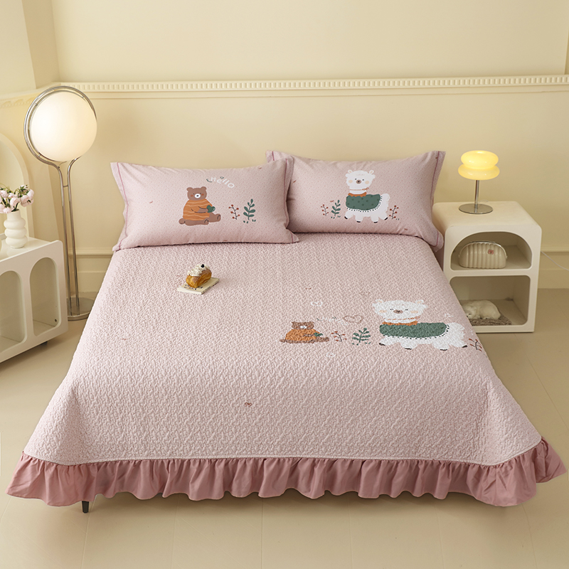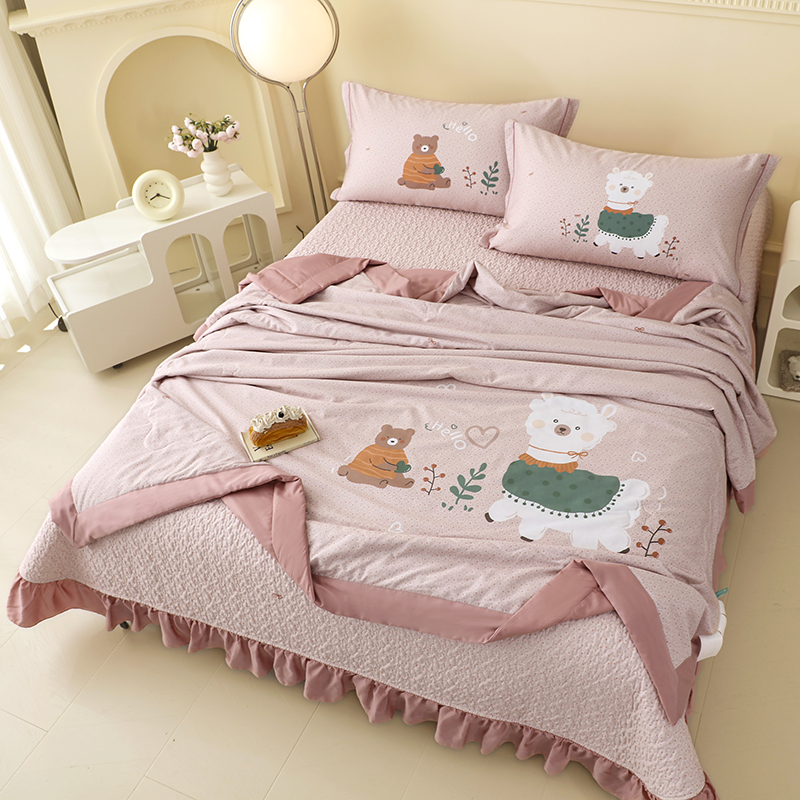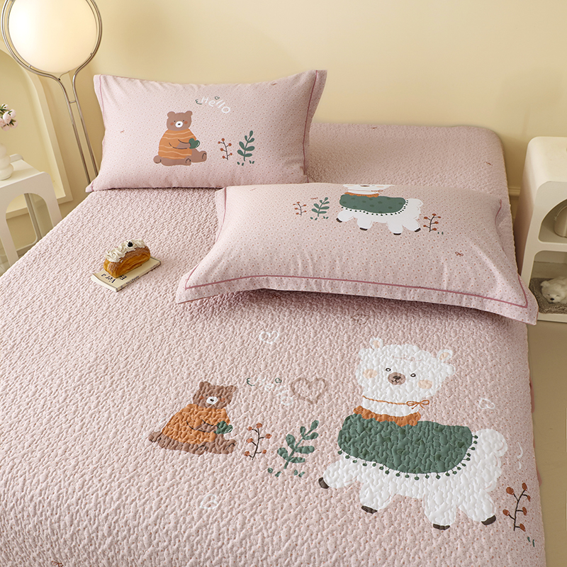 丫丫家纺 2025新款直播热款60天丝床盖法式花边夹棉床盖三件套绗缝可水洗机洗床盖 可爱羊驼