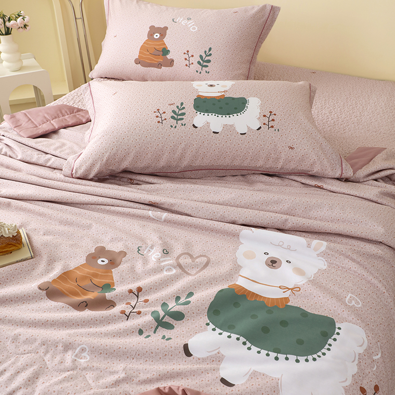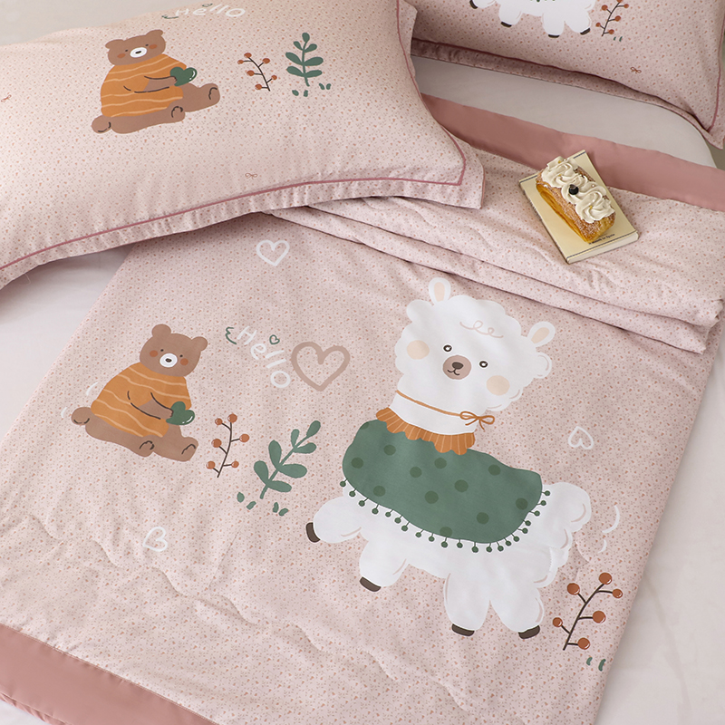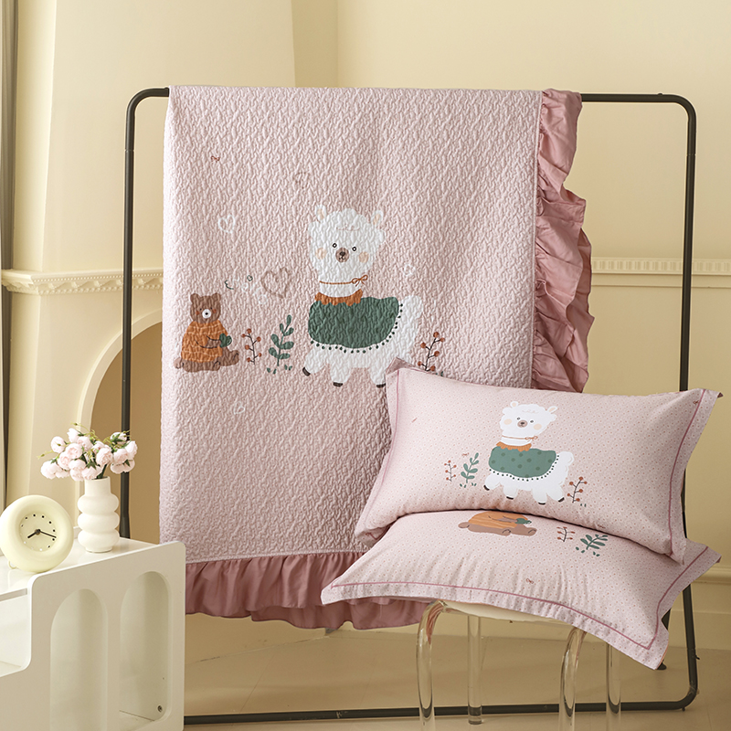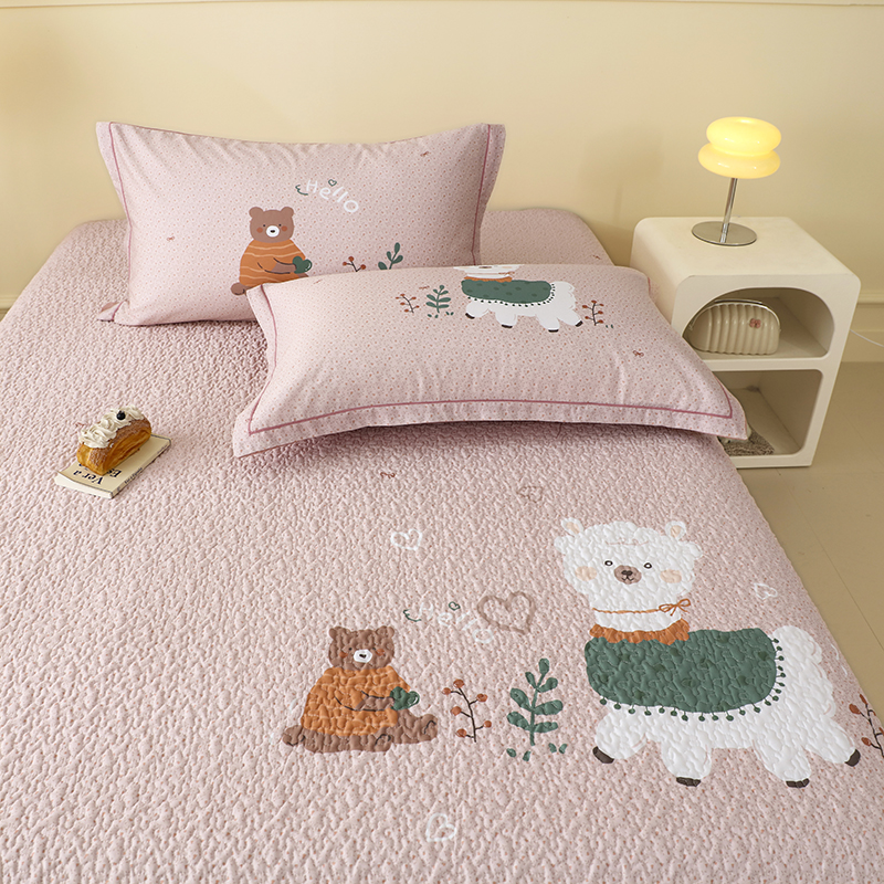 商品名称:丫丫家纺 2025新款直播热款60天丝床盖法式花边夹棉床盖三件套绗缝可水洗机洗床盖 可爱羊驼