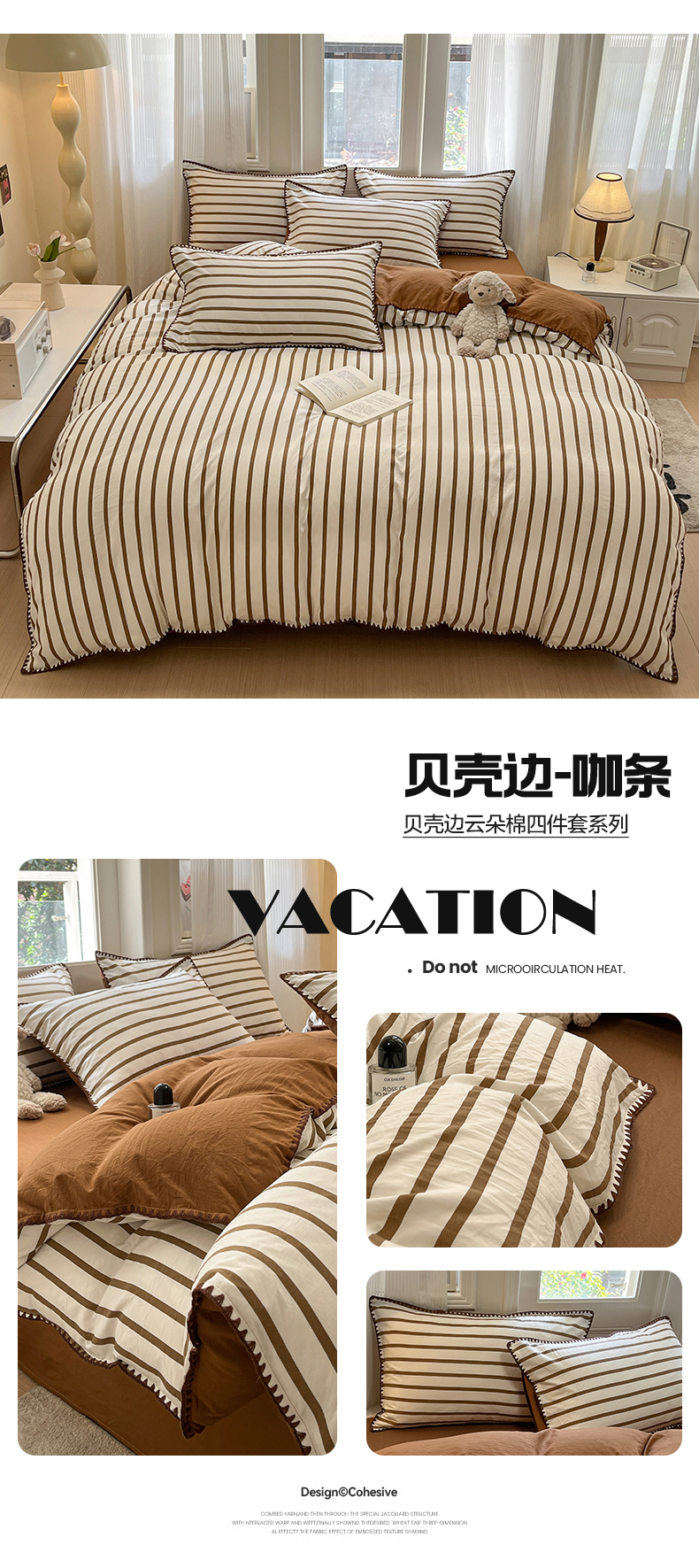 首尔家纺 2025新款云朵棉贝壳边款四件套 贝壳边-咖条
