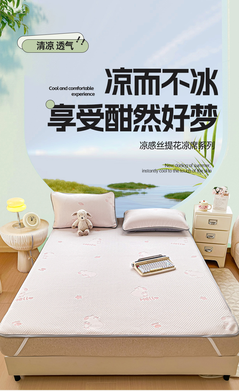 商品名称:芙绣 2025新款凉感丝提花学生凉席三件套 莓烦恼