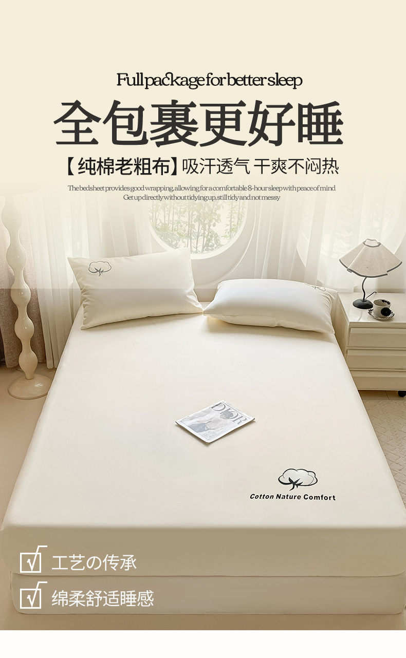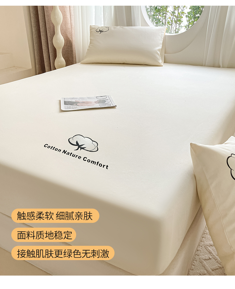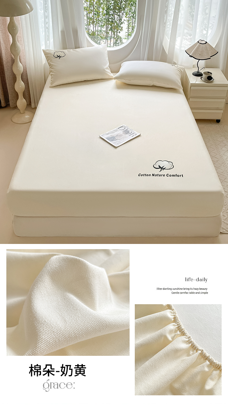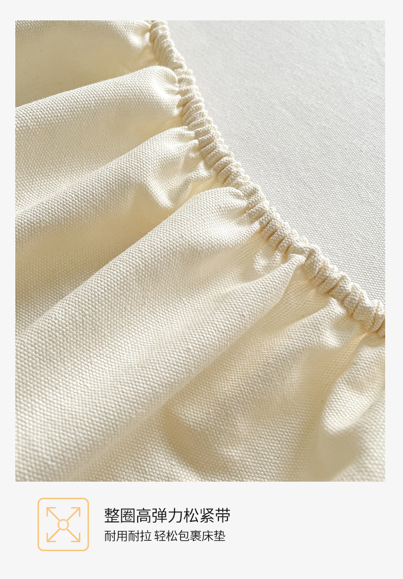 布卢姆床垫 2025新款全棉烫画全棉老粗布床笠 棉朵-奶黄