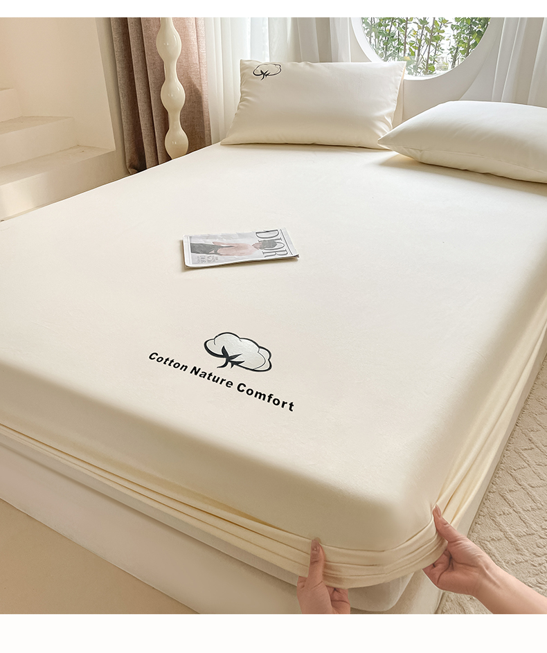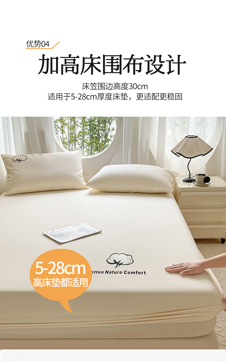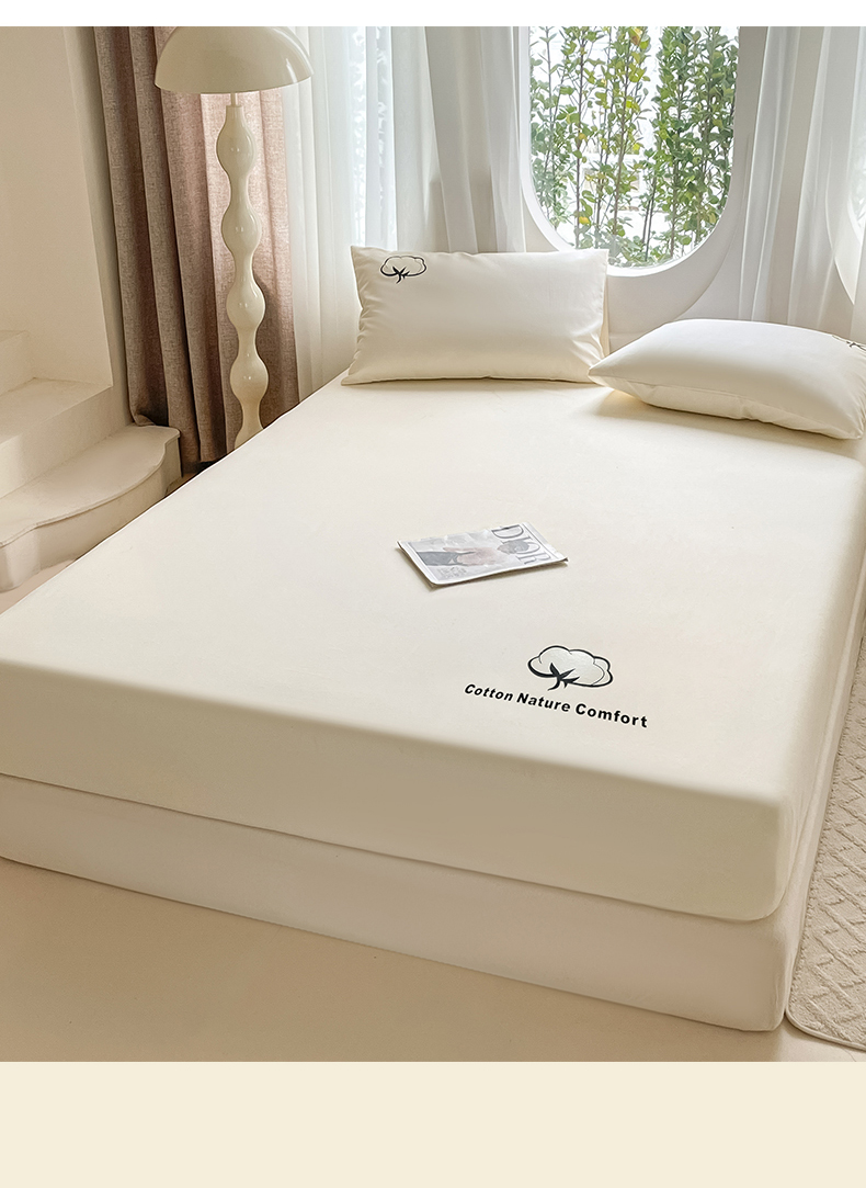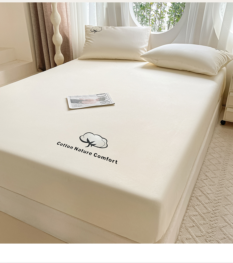 布卢姆床垫 2025新款全棉烫画全棉老粗布床笠 棉朵-奶黄