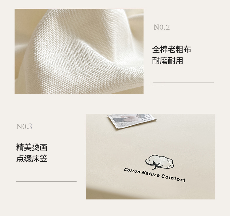 商品名称:布卢姆床垫 2025新款全棉烫画全棉老粗布床笠 棉朵-奶黄