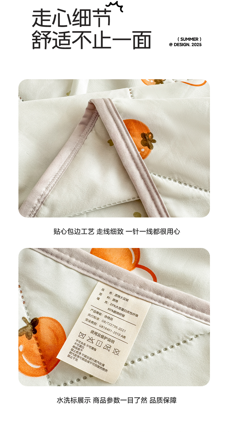 商品名称:薇玛仕 2025新款印花款小清新超声波大豆夏凉被空调被 柿柿如意