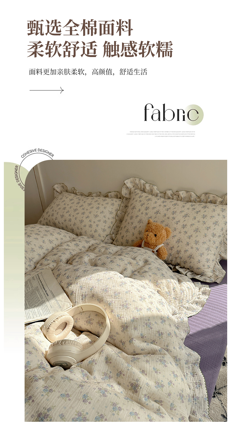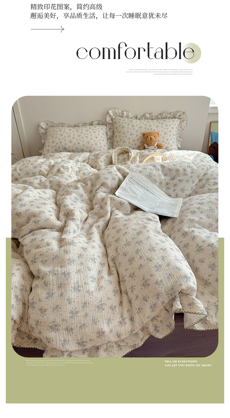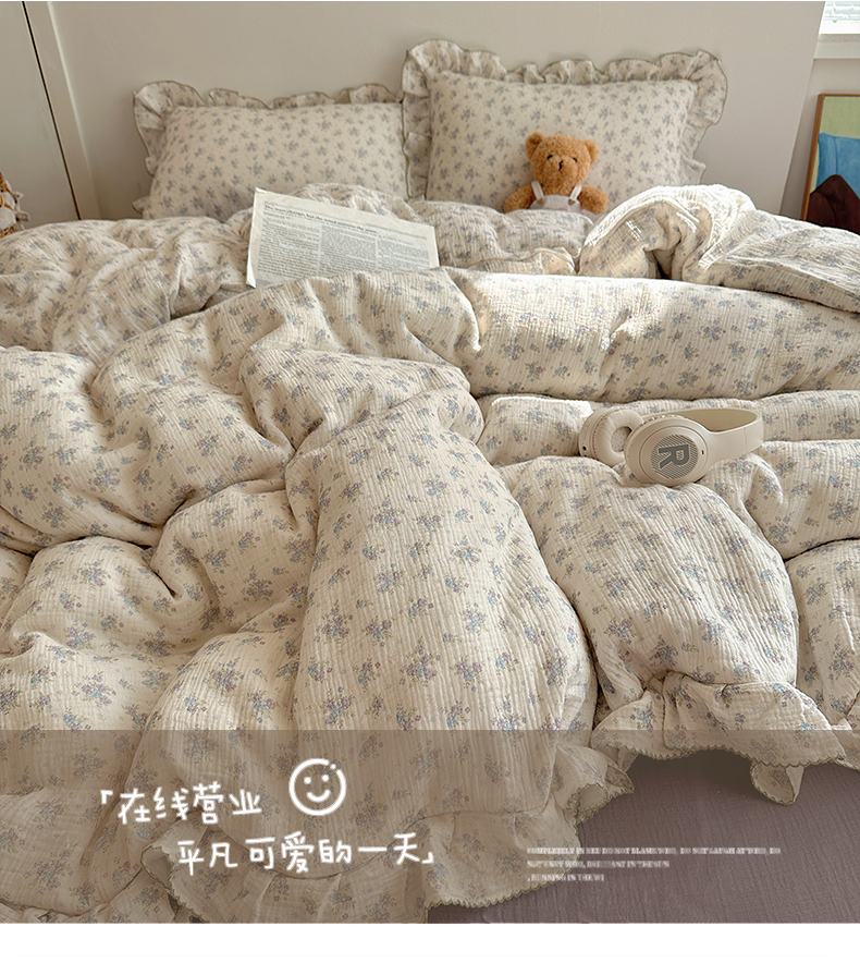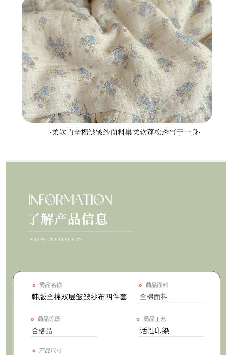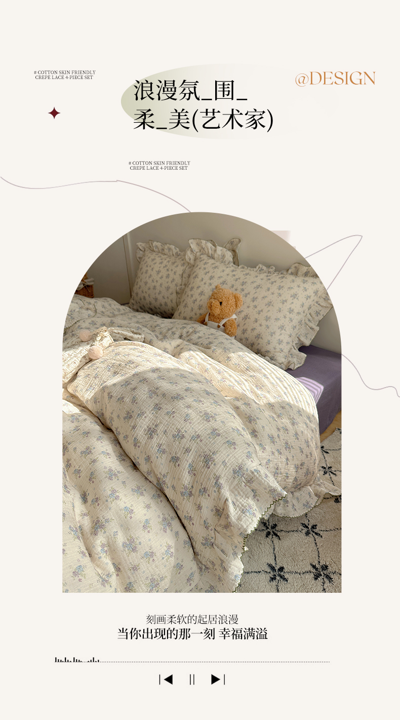 商品名称:2025新韩版花边全棉双层皱皱纱布四件套 怦然心动
