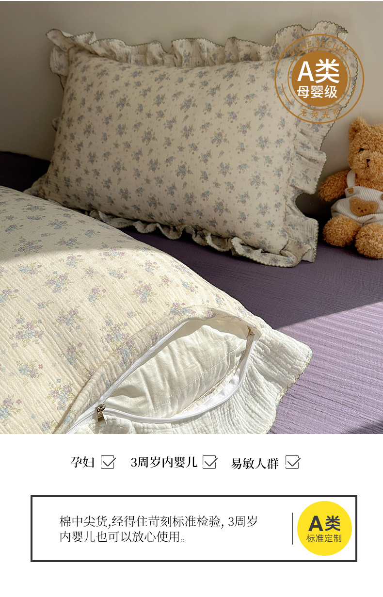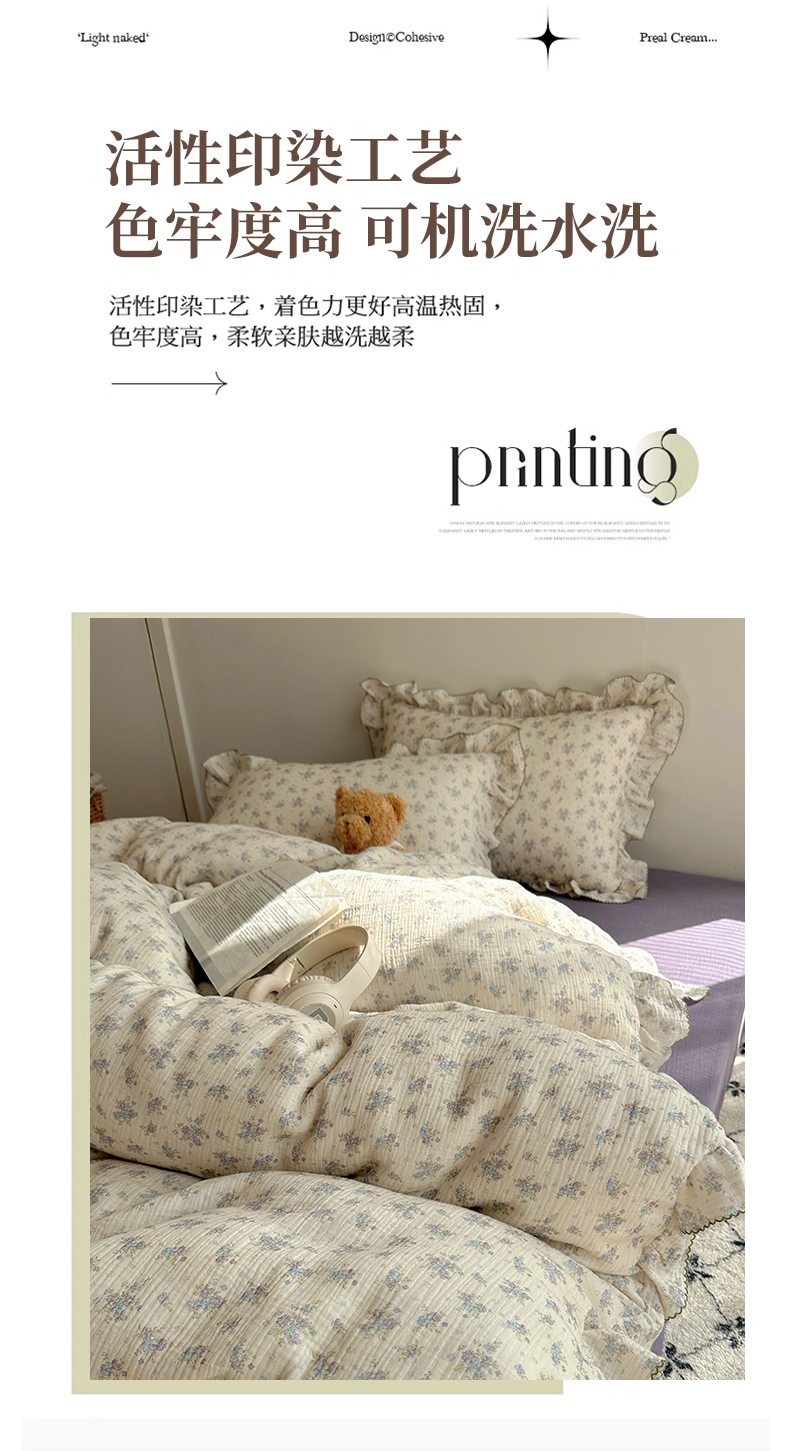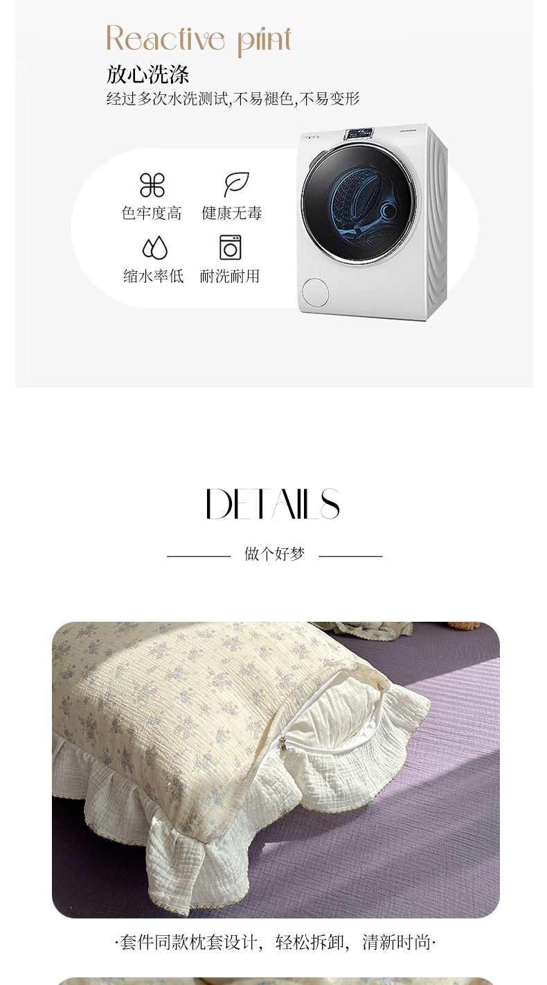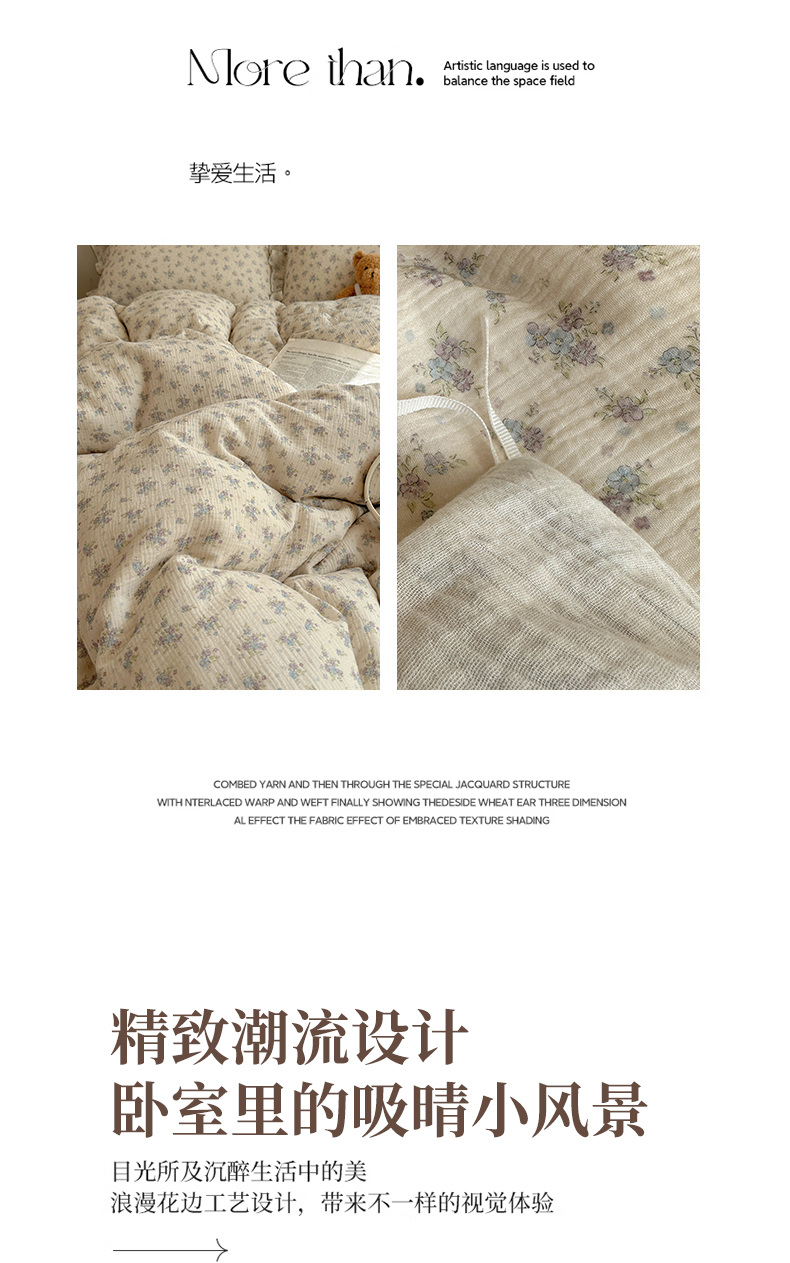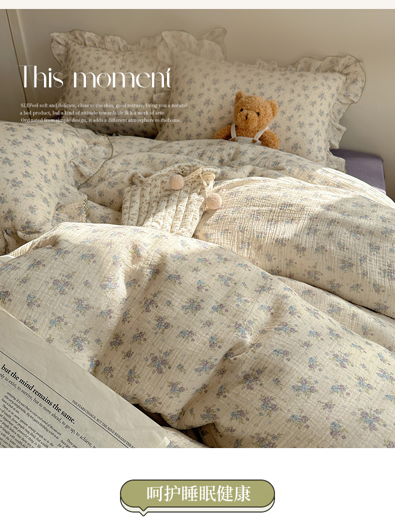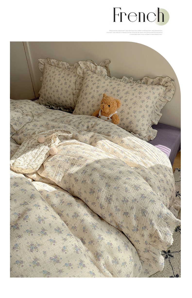 商品名称:2025新韩版花边全棉双层皱皱纱布四件套 怦然心动