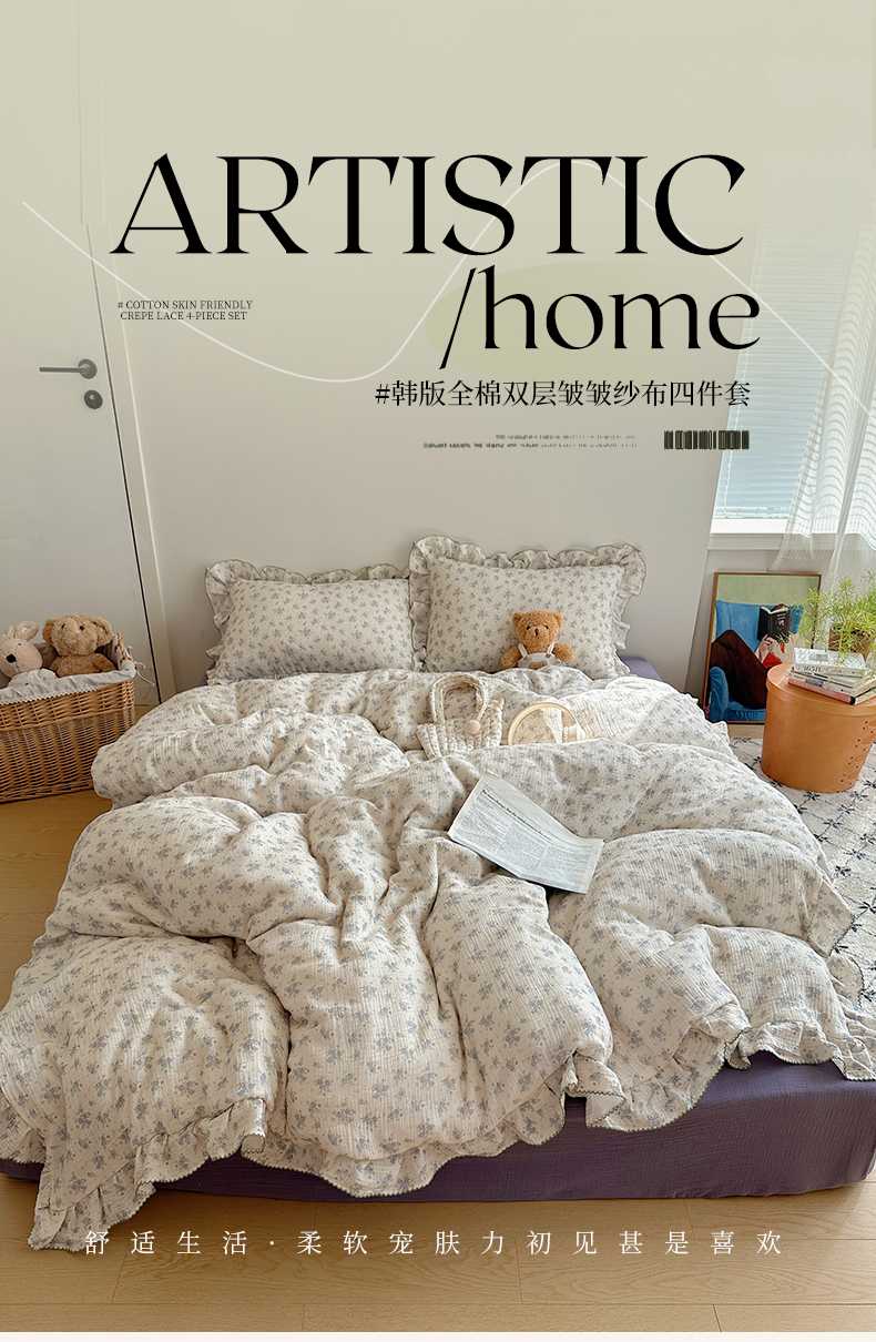 2025新韩版花边全棉双层皱皱纱布四件套 怦然心动