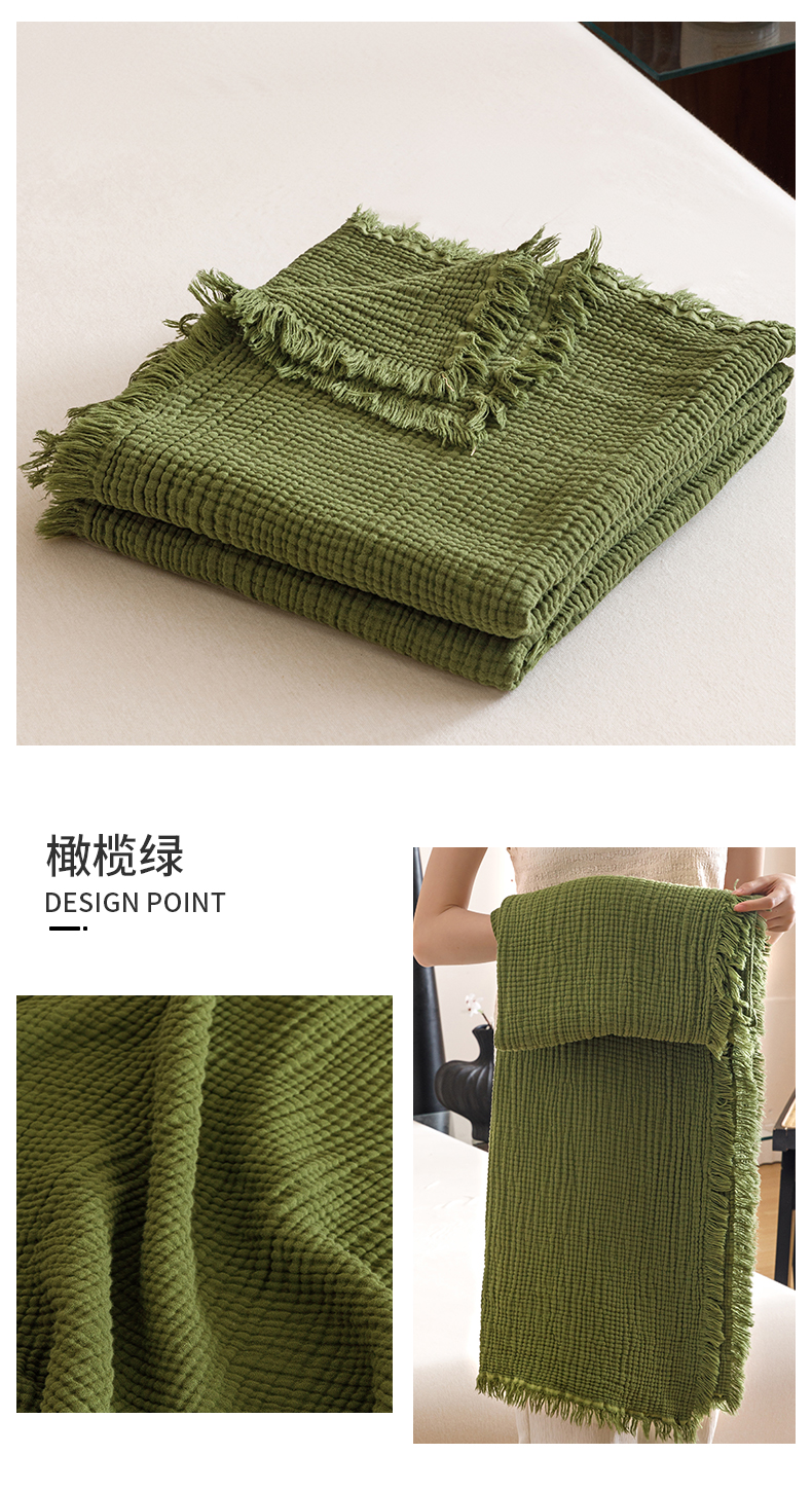 商品名称:瑞米家居 2025新款A类皱皱纱流苏毯盖毯毯子 橄榄绿