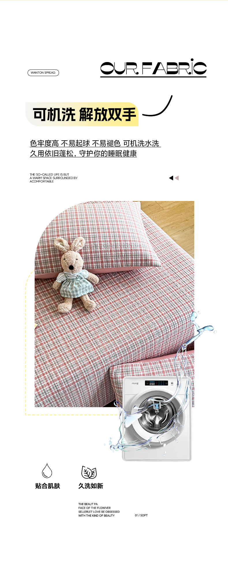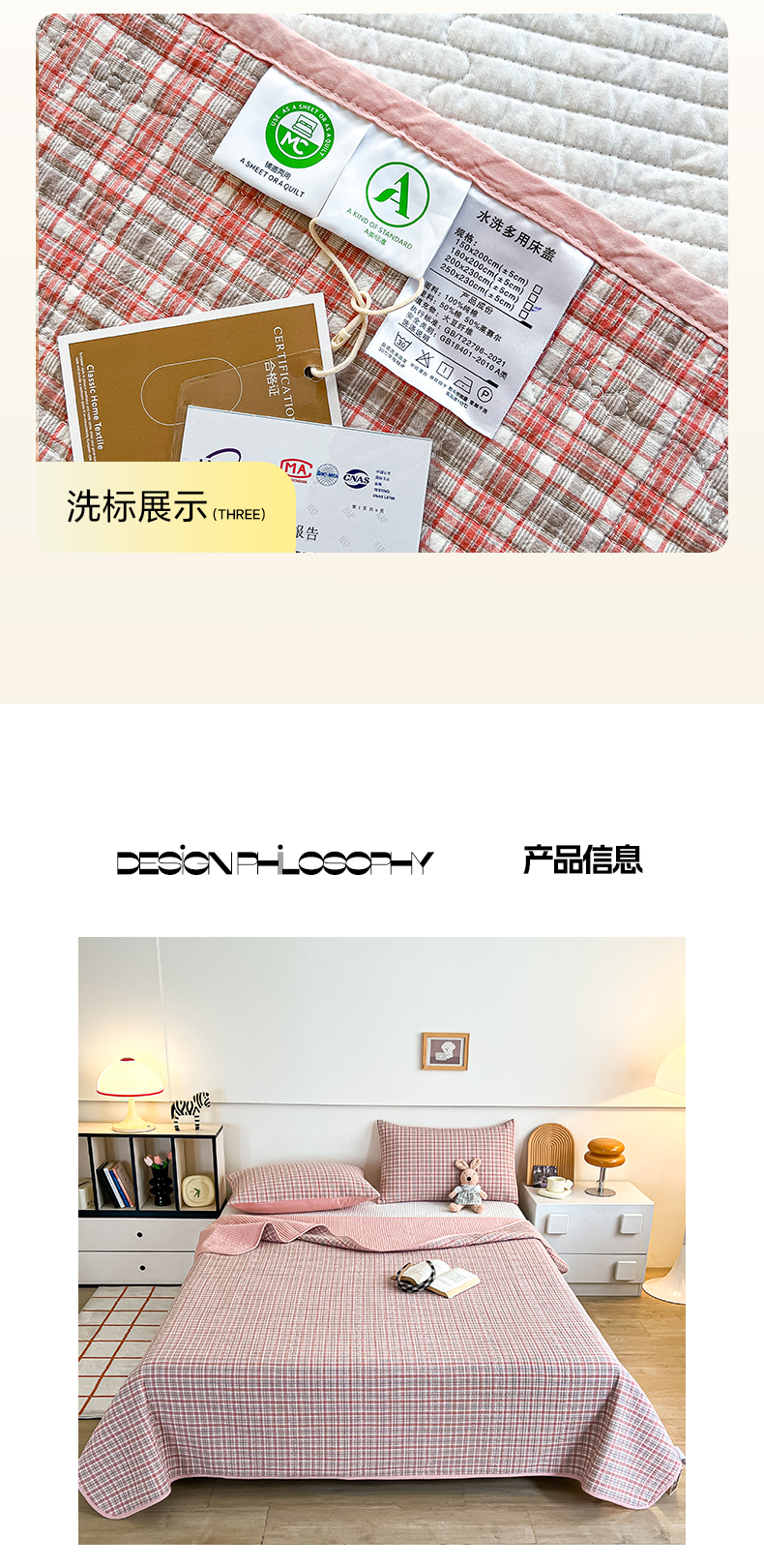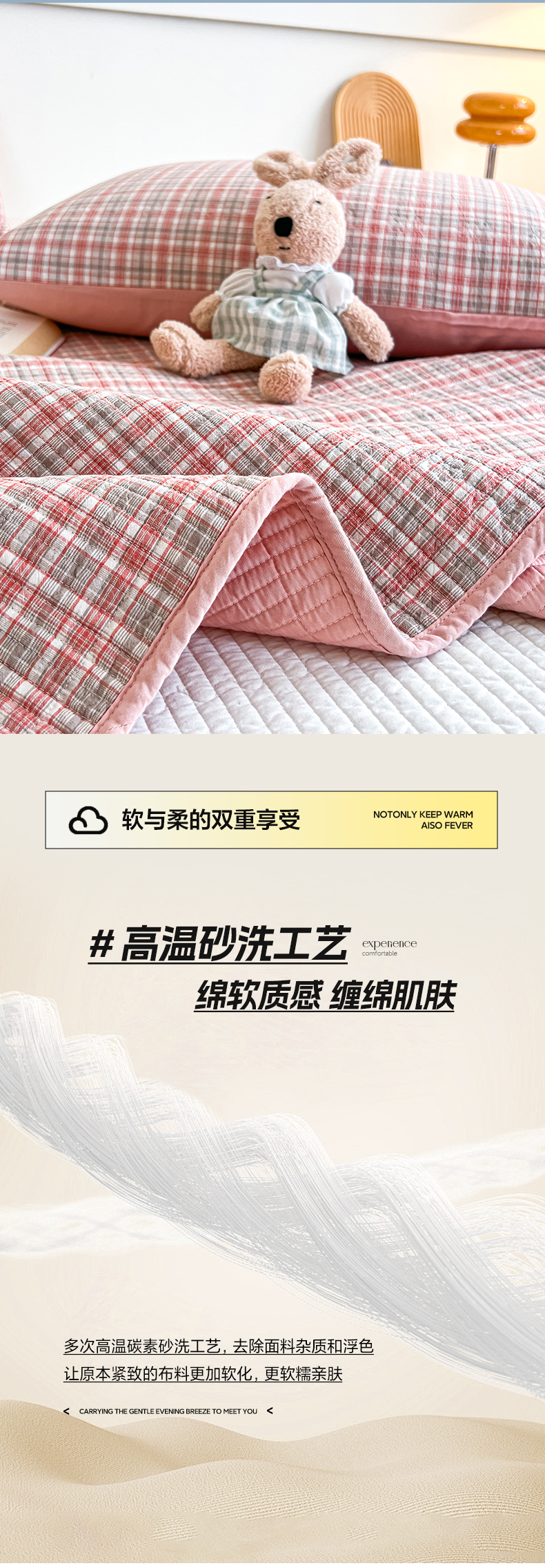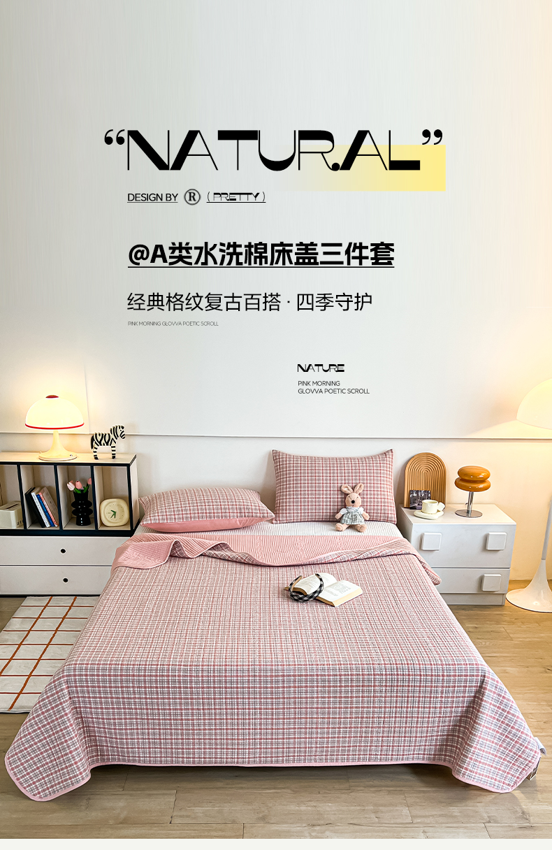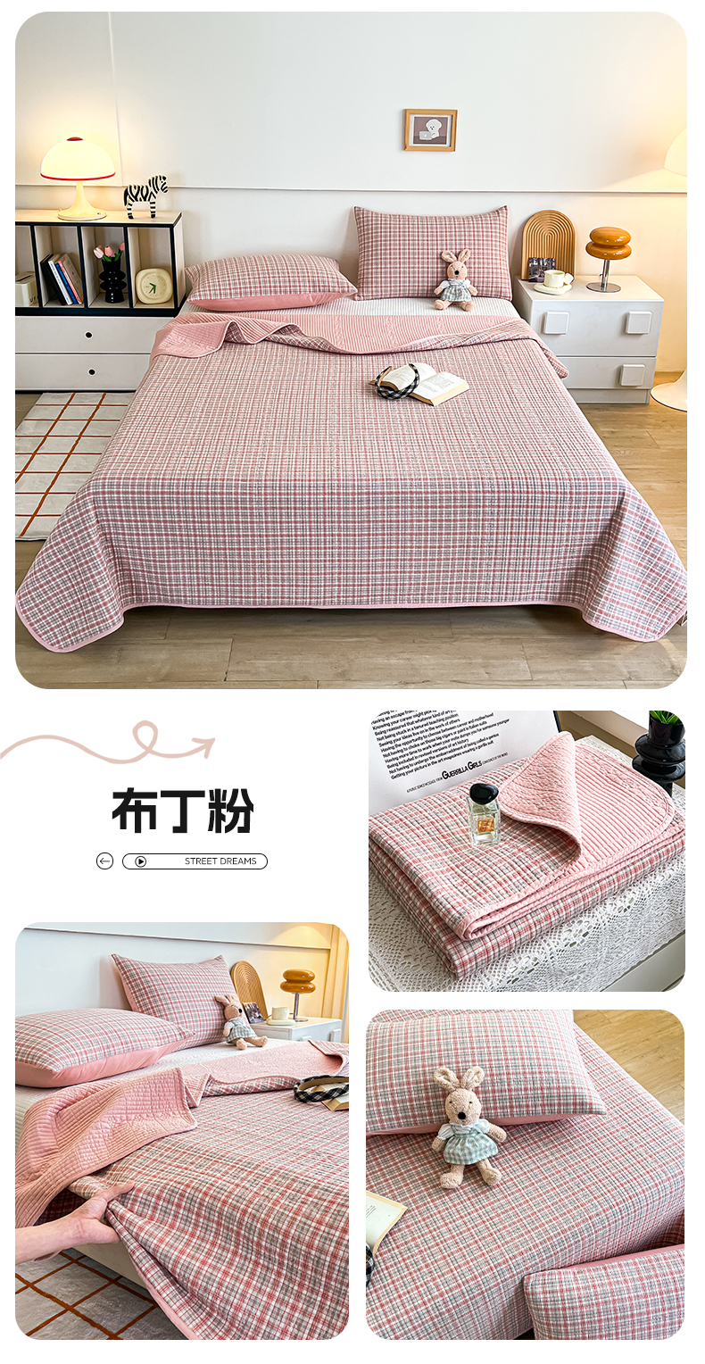当前位置: 91家纺网 > 商品网购 > 床品套件 > 四件套 > 其它四件套 > 沐纯家居 2025新款格子款天丝棉床盖三件套 布丁粉
