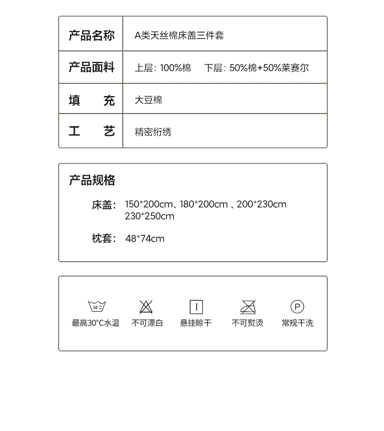 150*200cm 三件套 | ¥125.00 |