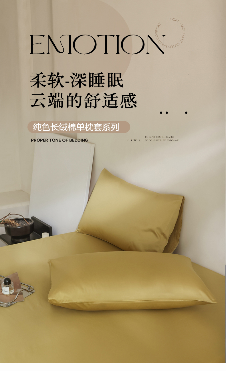 棉眠 2025新款长绒棉纯色单品系列-单枕套 芥末黄