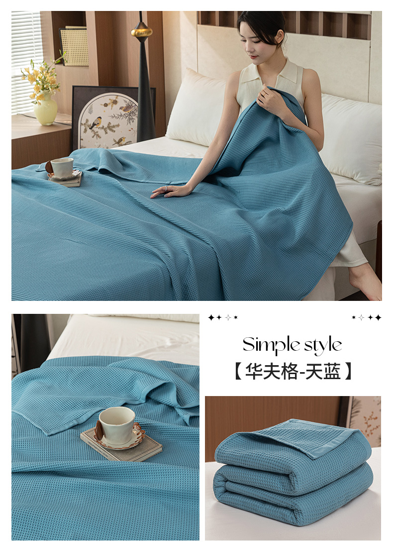 商品名称:乐家毛巾被 2025春夏新款日式华夫全棉纯棉毛巾被 华夫格-天蓝