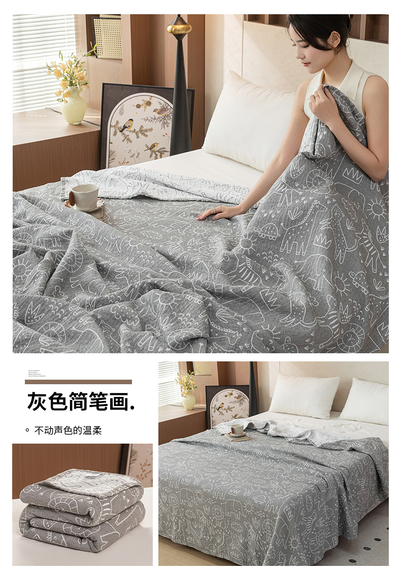 商品名称:乐家毛巾被 2025春夏新款三层棉全棉纯棉毛巾被 灰色简笔画