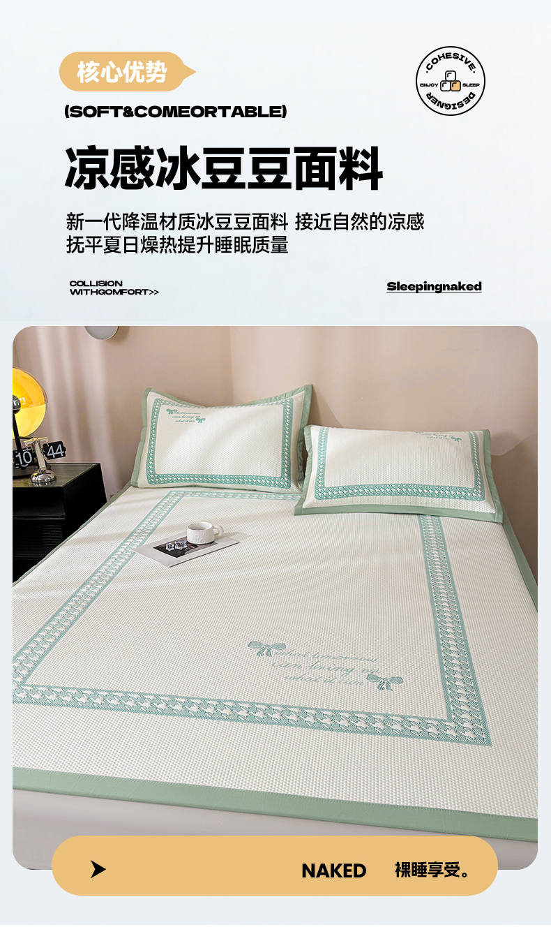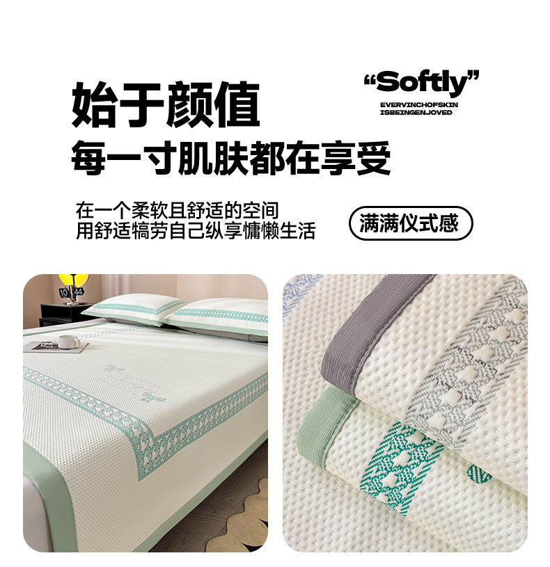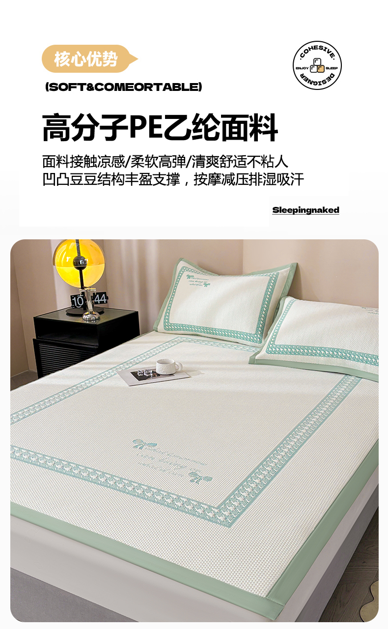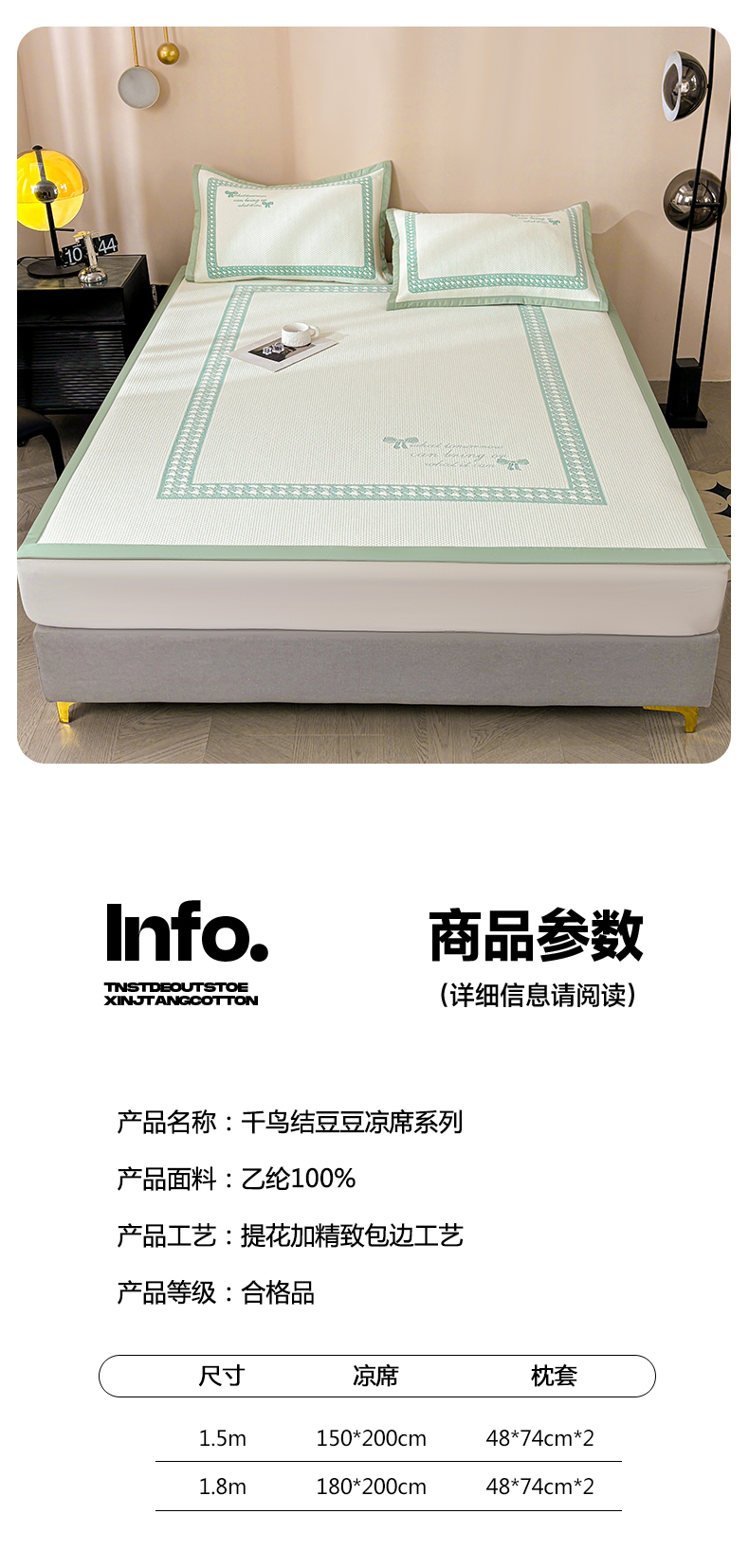 商品名称:(总)慕木家纺 2025新品A类高端大版高分子530克PE提花冰豆豆床席床笠千鸟结系列直播爆款(可供跨境压缩)