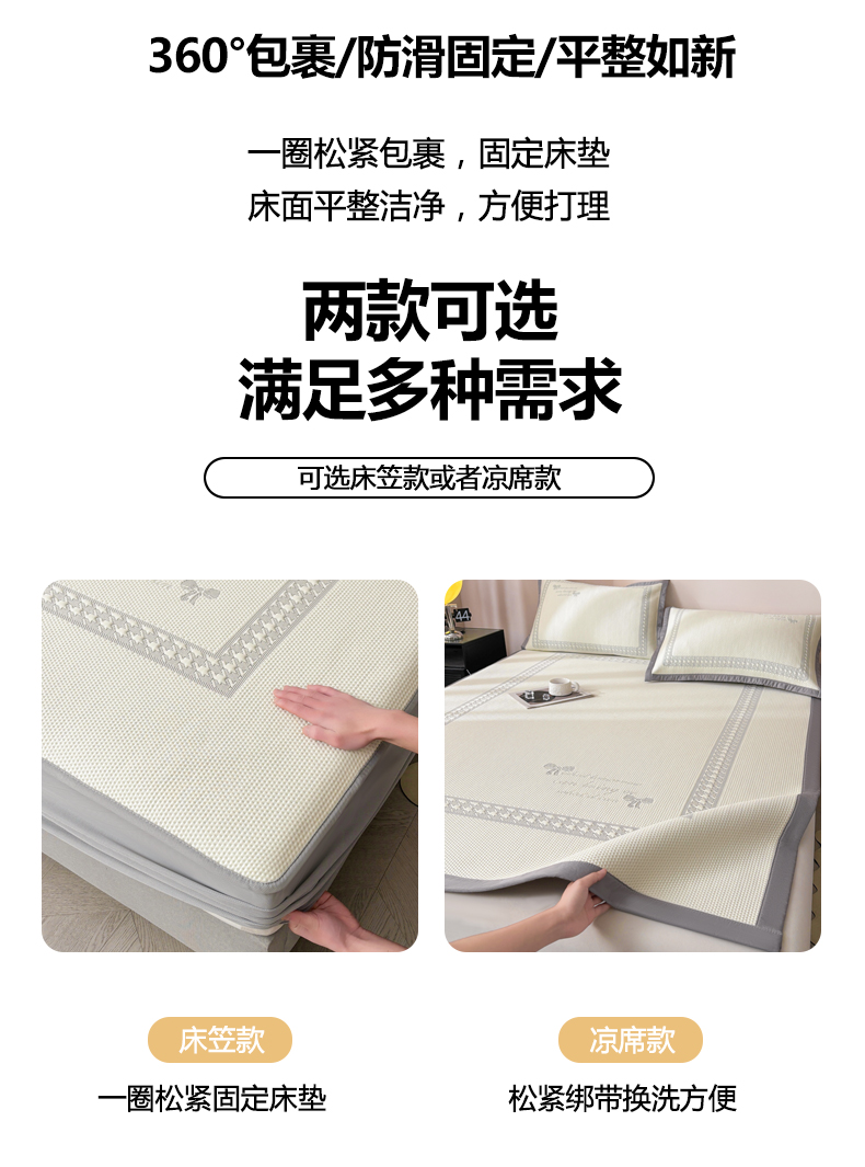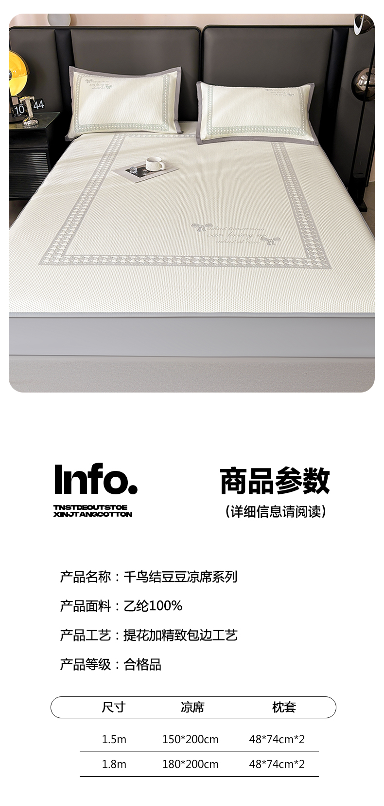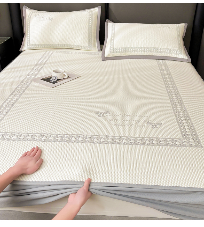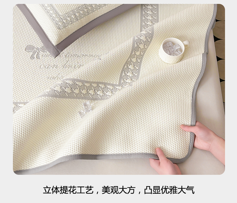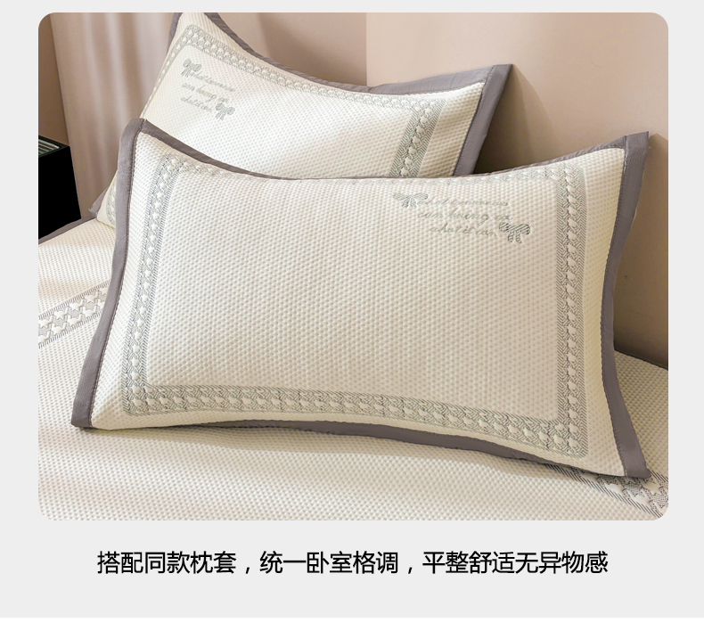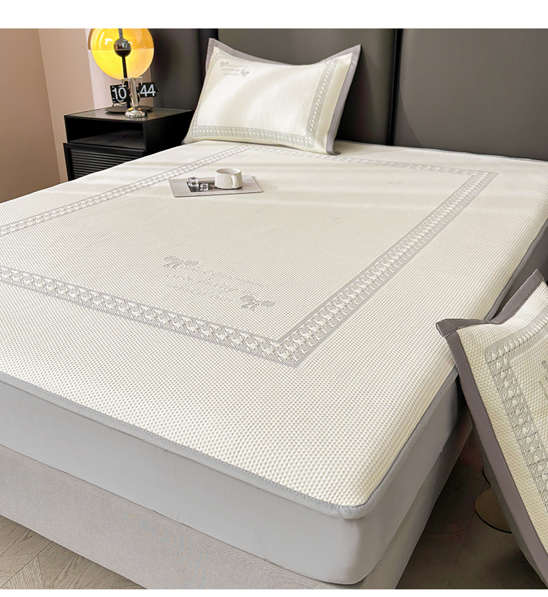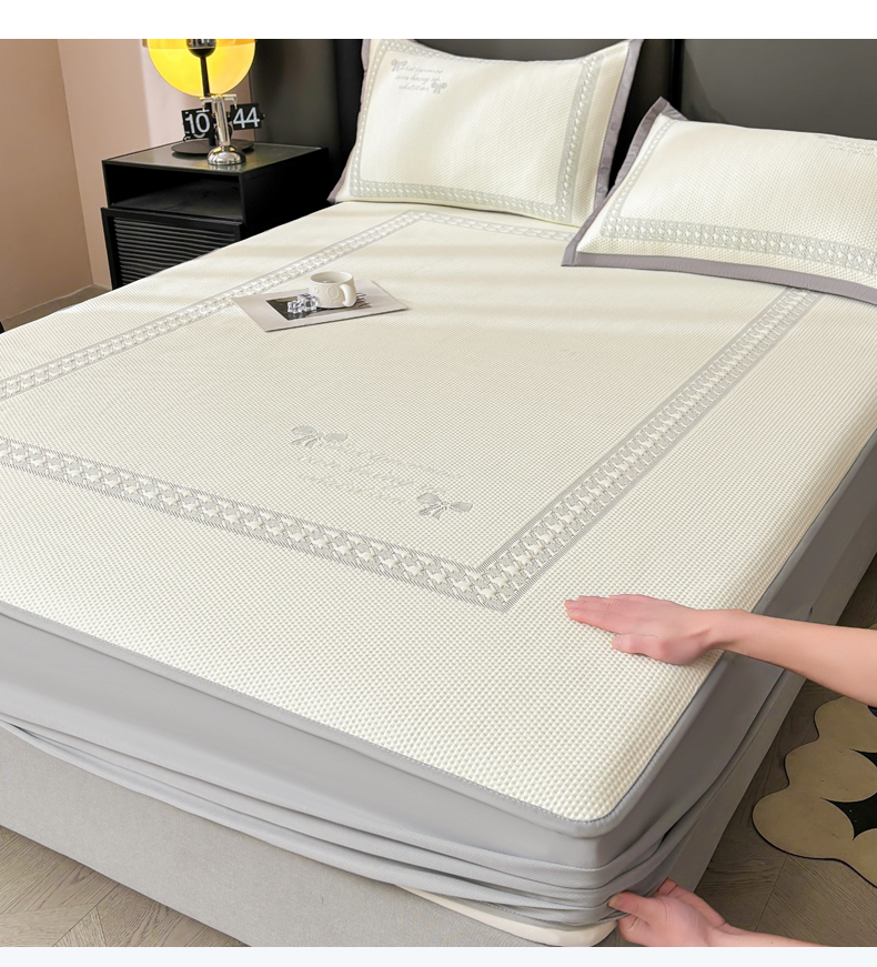 商品名称:慕木家纺 2025新品A类高端大版高分子530克PE提花冰豆豆床席床笠千鸟结系列直播爆款(可供跨境压缩) 千鸟结-灰 床笠