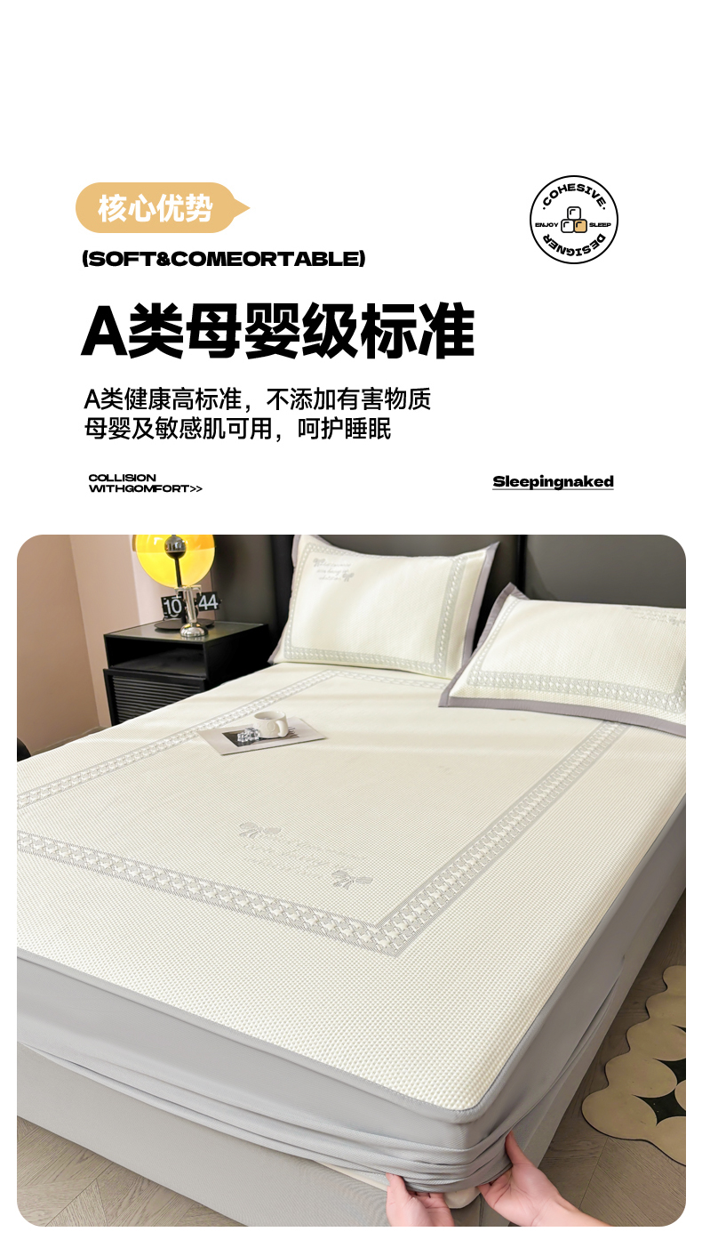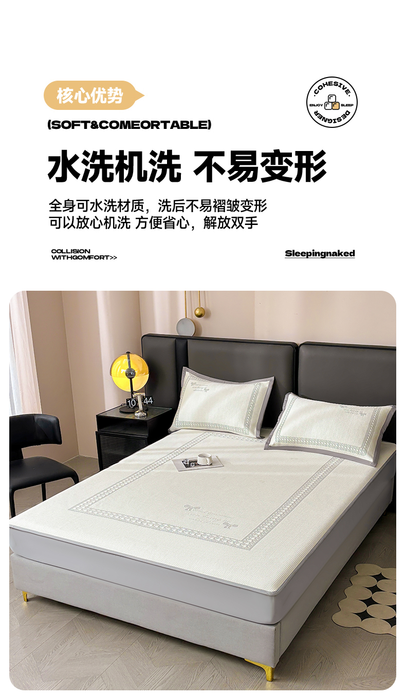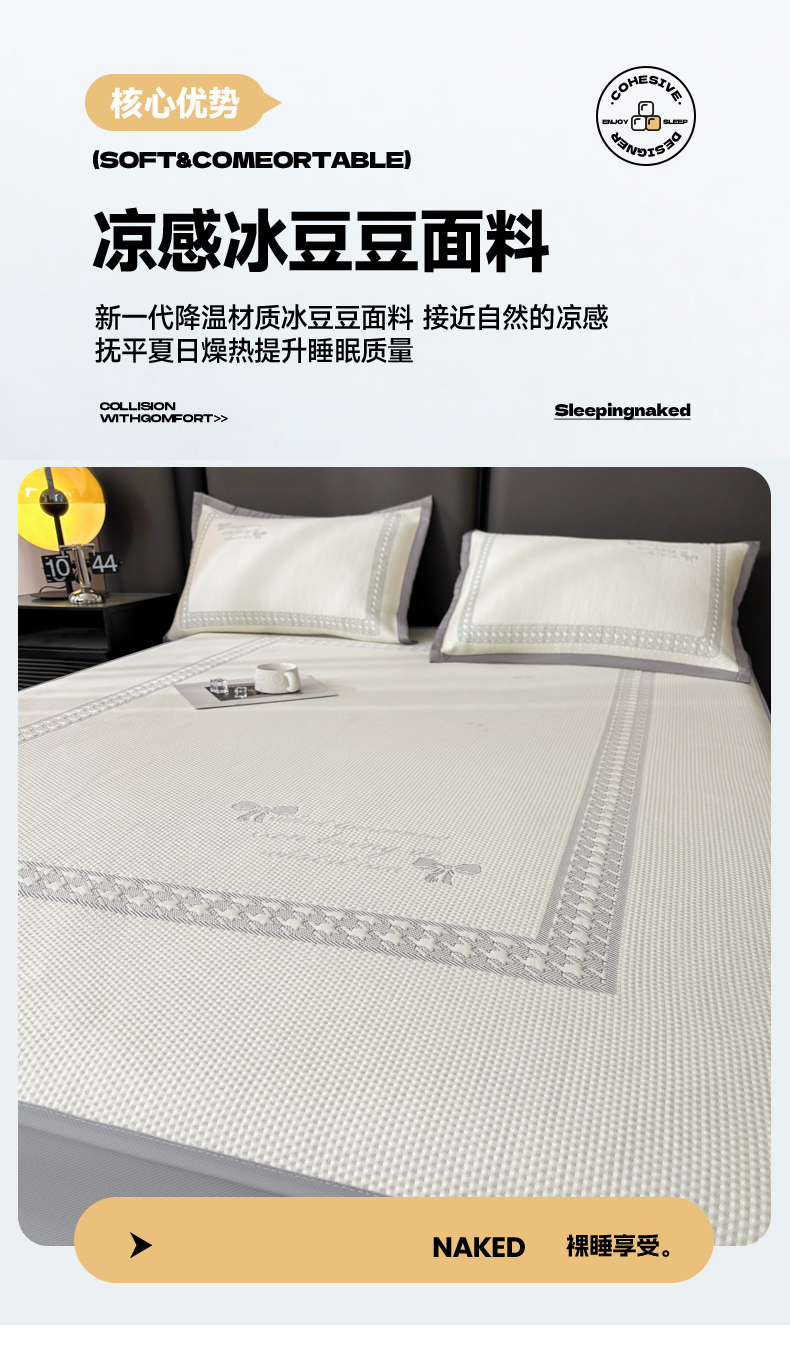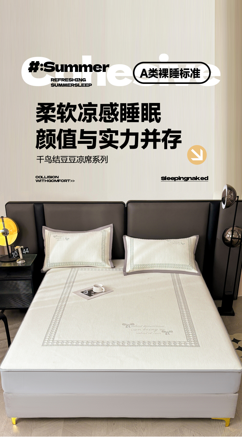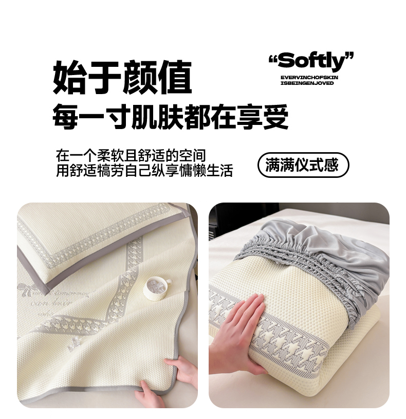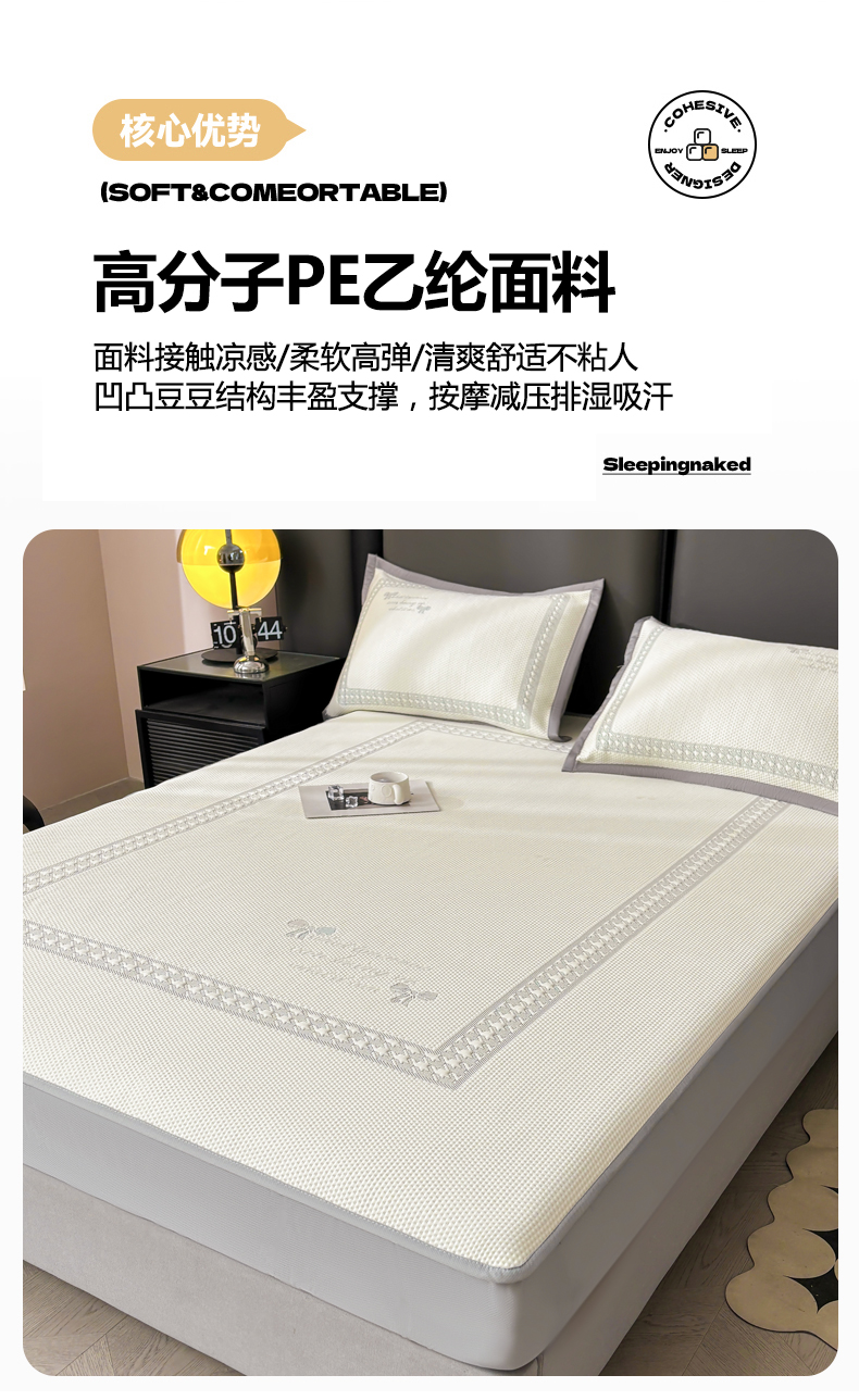 商品名称:慕木家纺 2025新品A类高端大版高分子530克PE提花冰豆豆床席床笠千鸟结系列直播爆款(可供跨境压缩) 千鸟结-灰 床笠