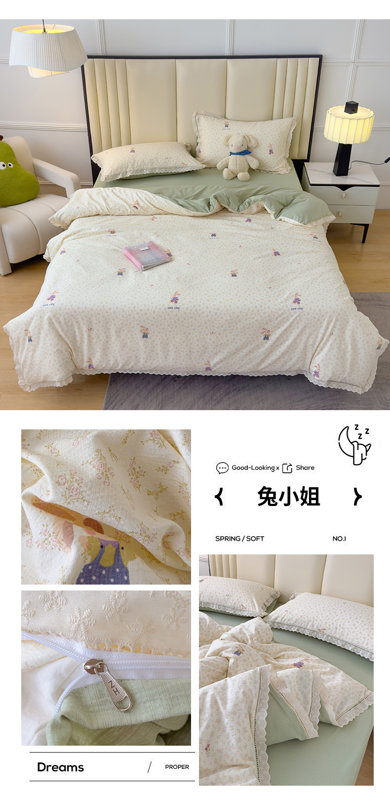 商品名称:竹合家纺 2025新款云感皱皱四件套-镂空花边款法式 花边款-兔小姐