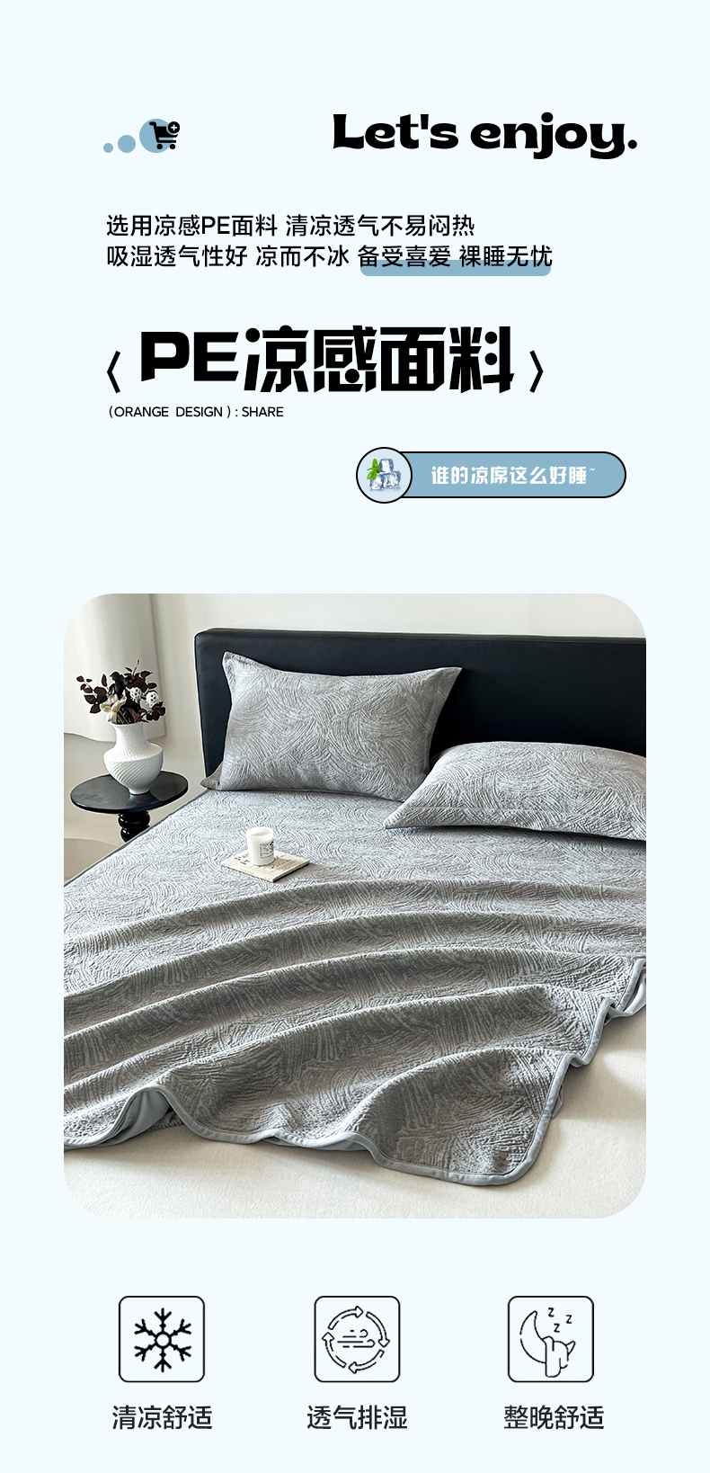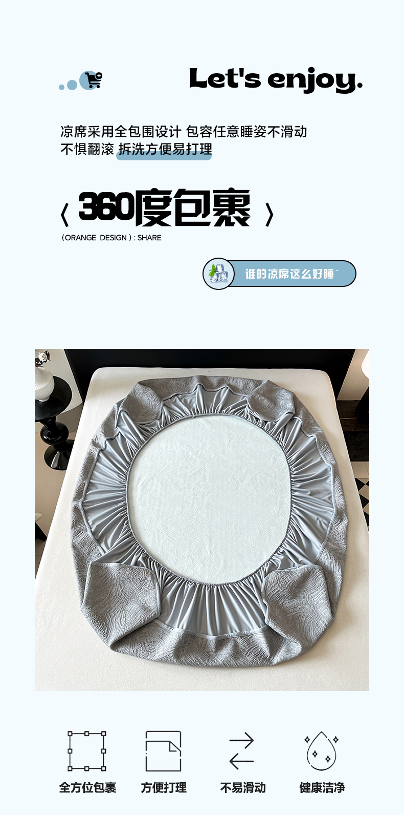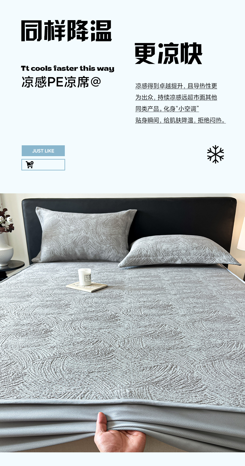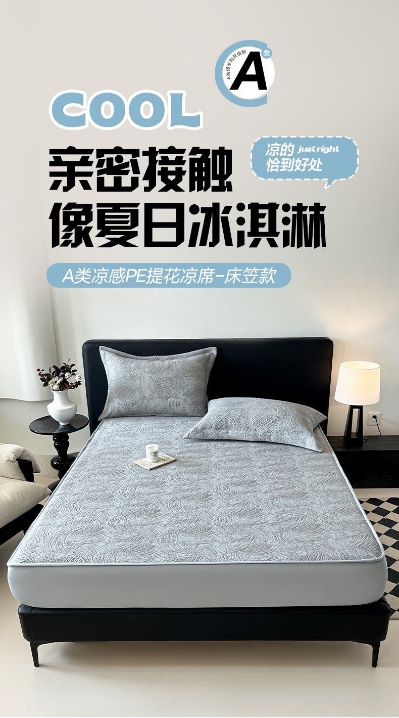 蓝邻家纺 2025新款PE提花床笠凉席-涂鸦系列 涂鸦-浅灰
