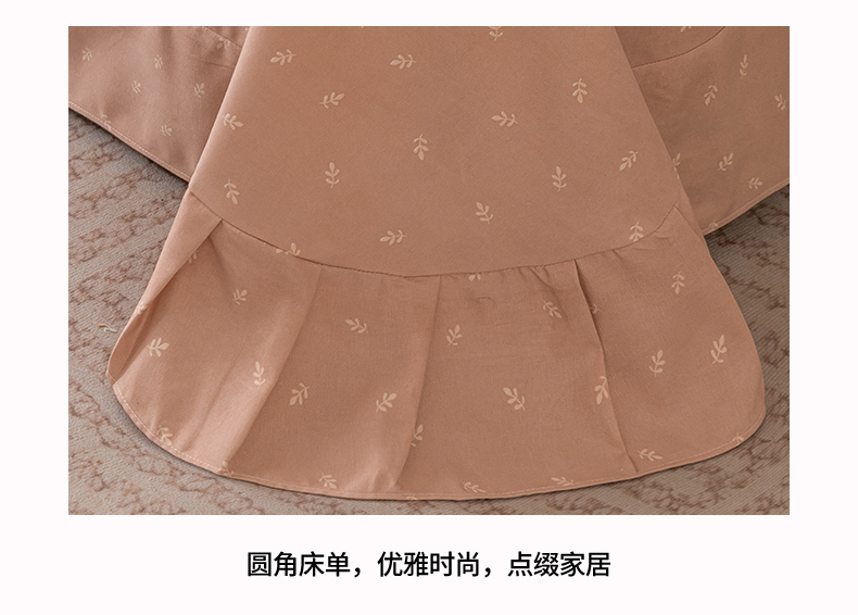 巧格家纺 2025爆款超柔云朵棉双层纱四件套不起球不掉色床裙款 心心念念-咖,心心念念-咖