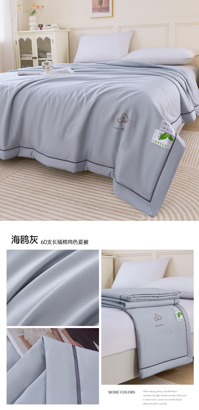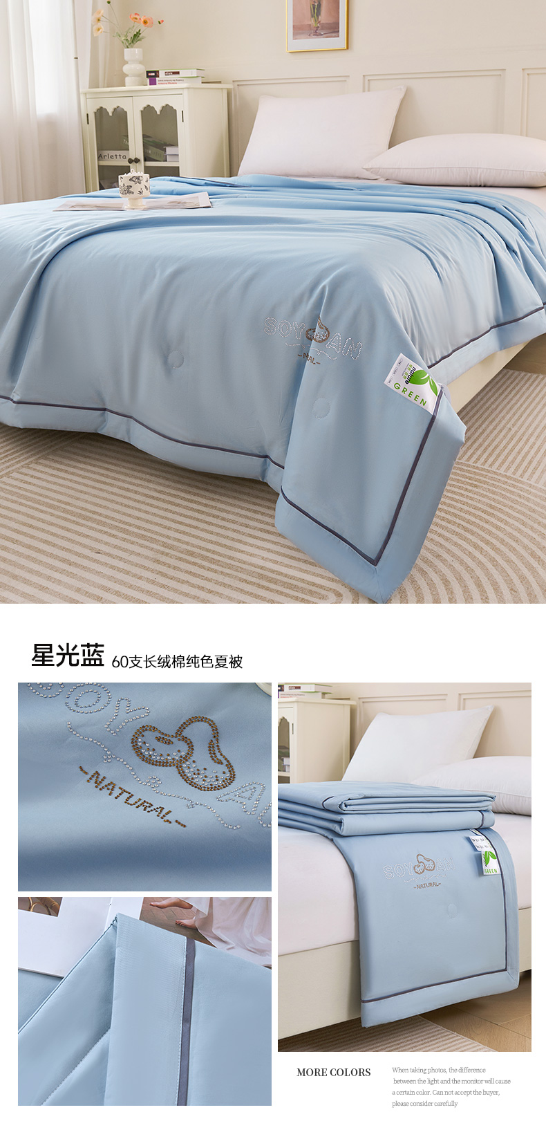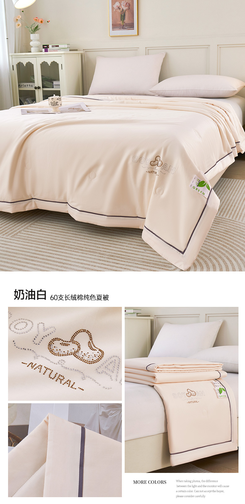 商品名称:(总)紫乐家纺 2025新款A类60新疆长绒棉纯色夏被大豆纤维夏凉被空调被被子被芯