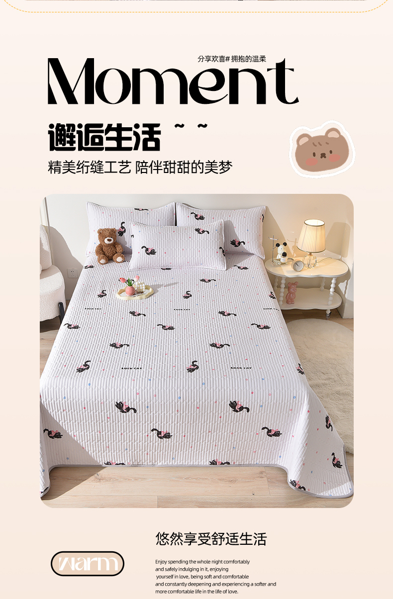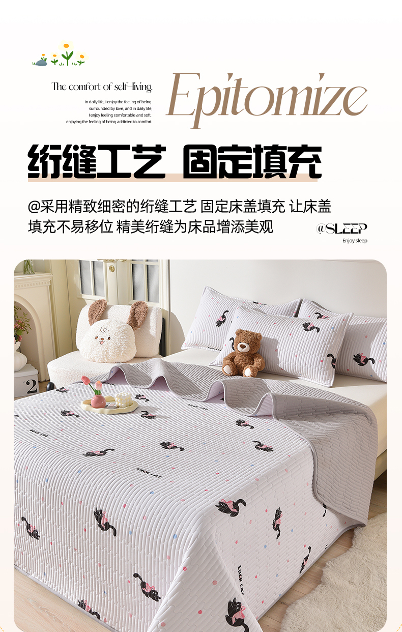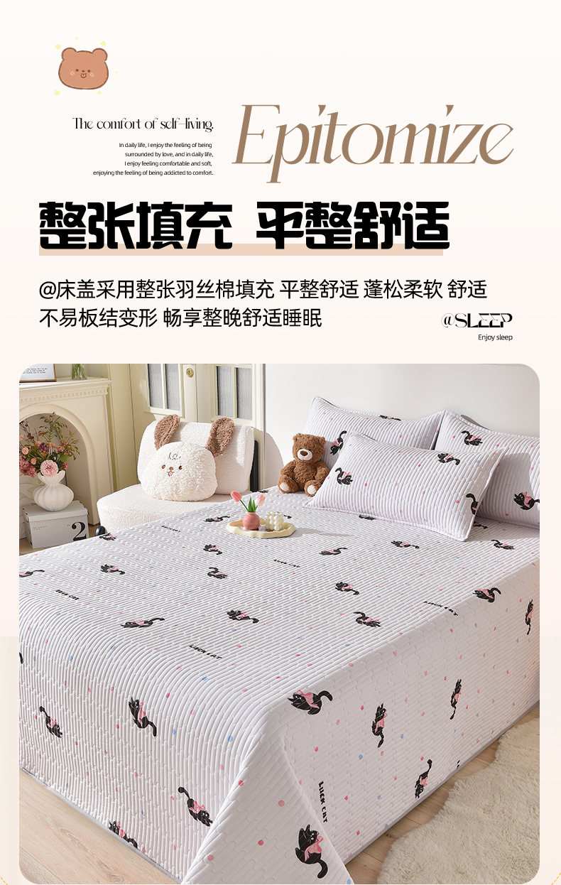 当前位置: 91家纺网 > 商品网购 > 床上用品 > 床盖 > 床笠人家 2025新款亲肤双面磨毛夹棉床盖 粉猫咪