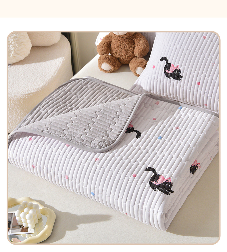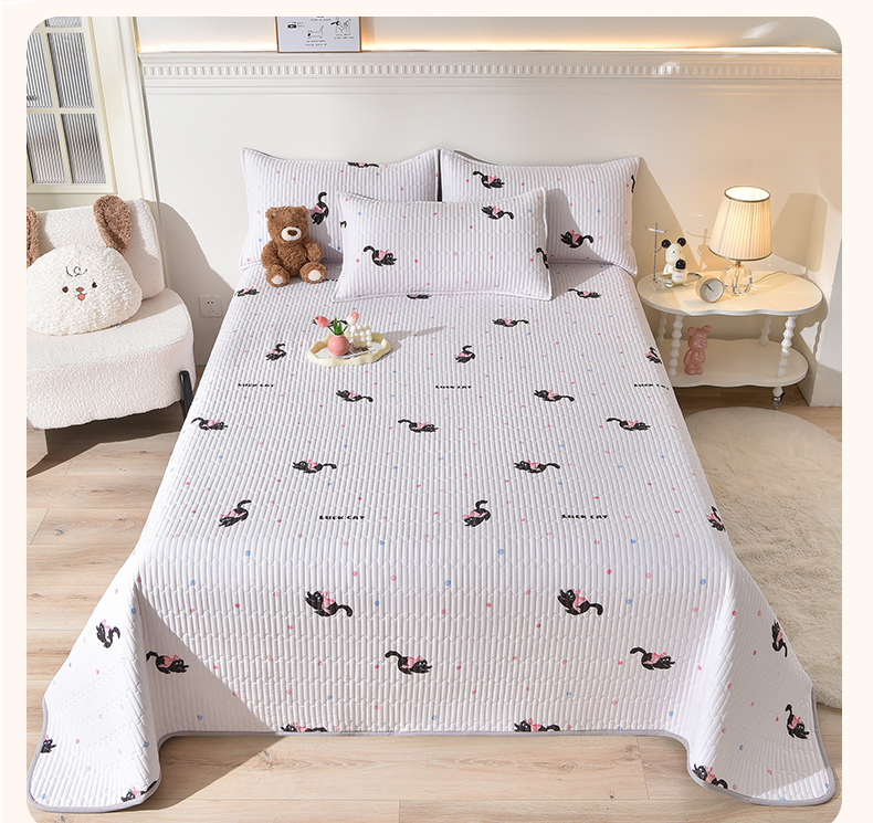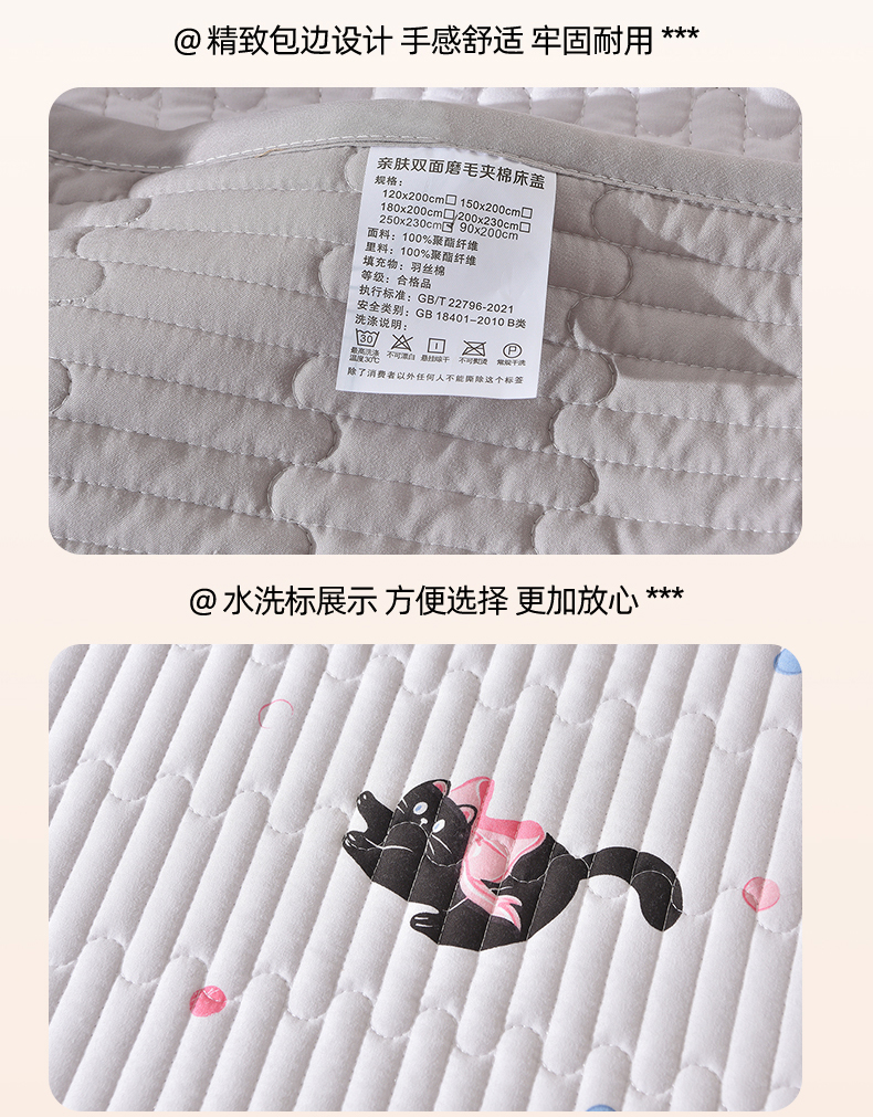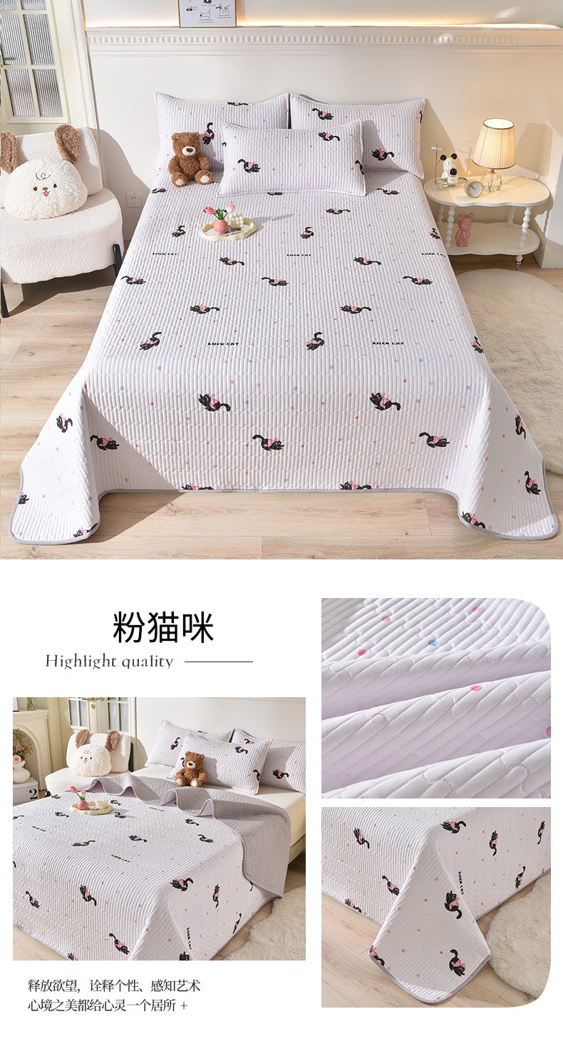 • 91家纺网 家纺一手货源 找家纺 床笠人家 2025新款亲肤双面磨毛夹棉床盖 粉猫咪