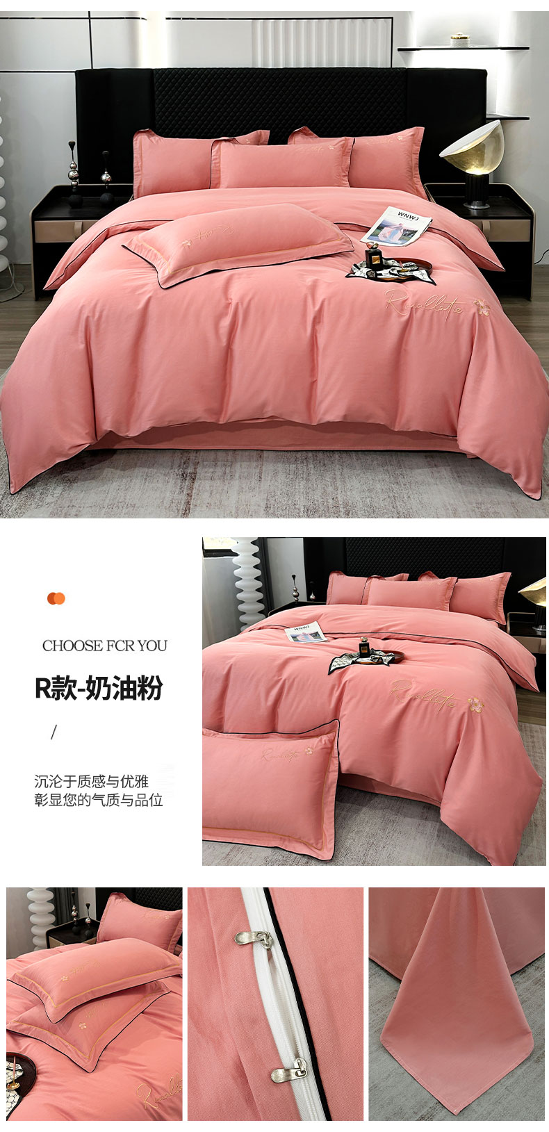 当前位置: 91家纺网 > 商品网购 > 床品套件 > 四件套 > 全棉普通四件套 > 宇彬家纺 2025新款13374全棉母婴级压线一字绣宽边枕套纯色刺绣四件套贡缎新疆长绒字母款-R款 R款-奶油粉