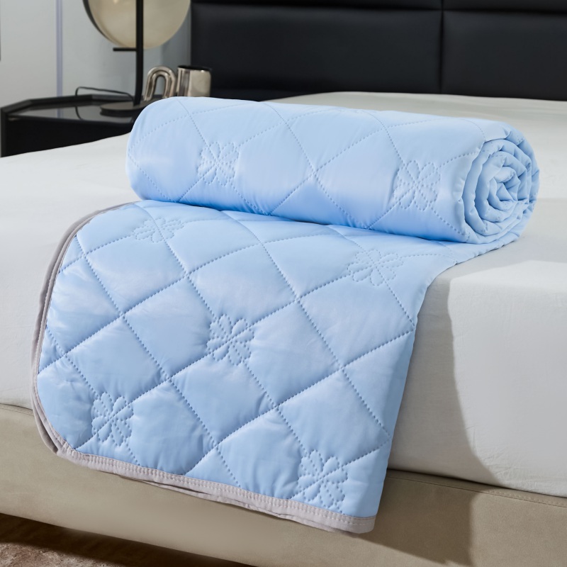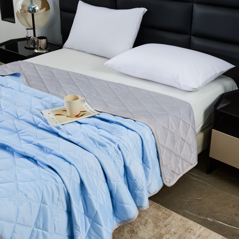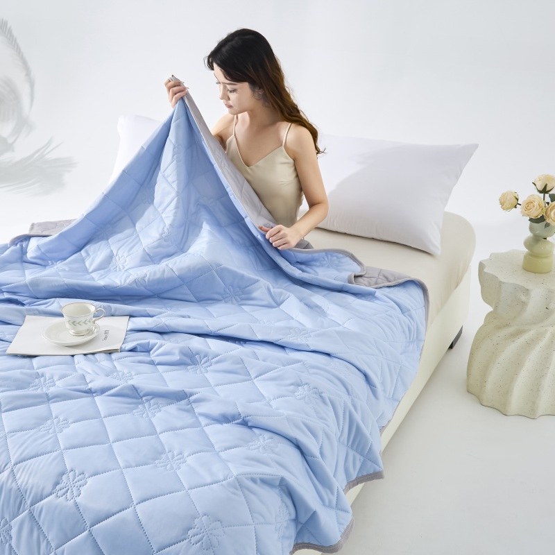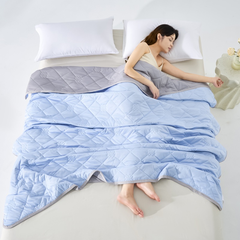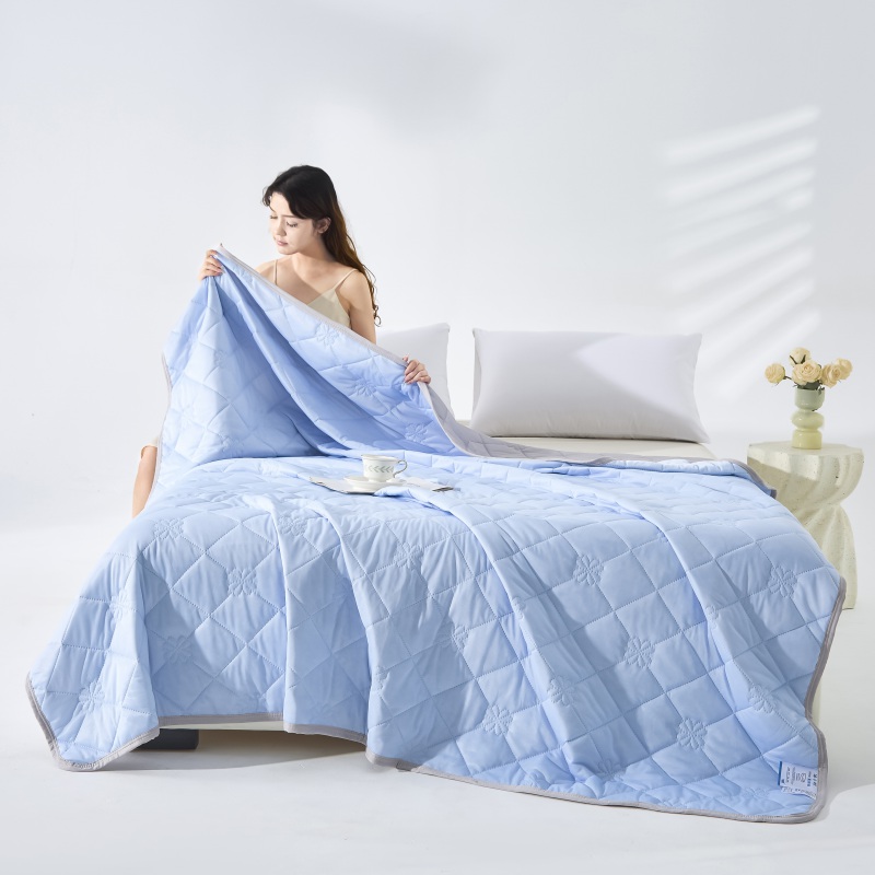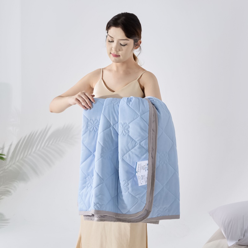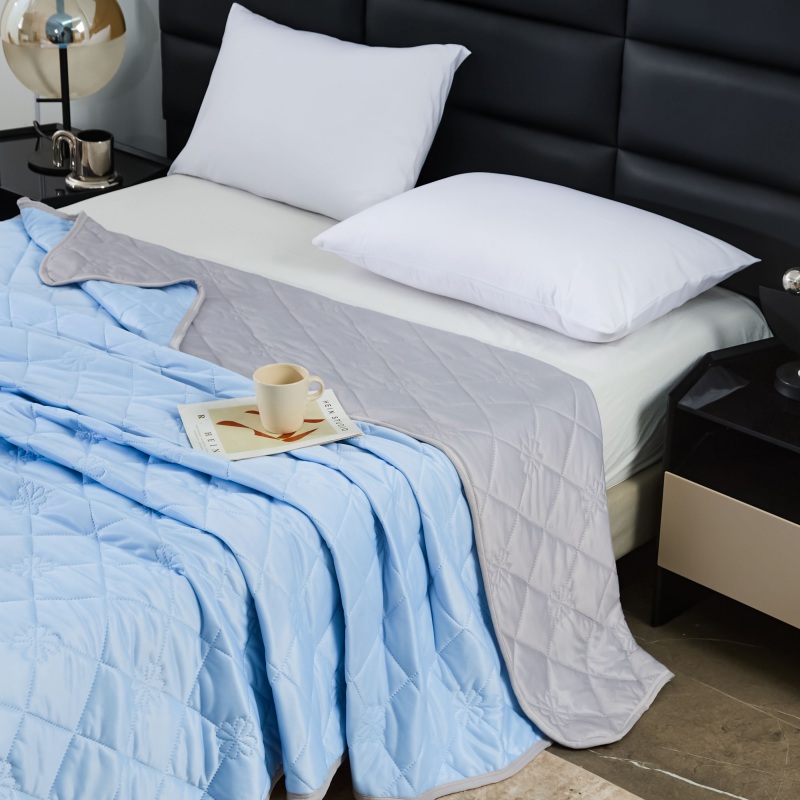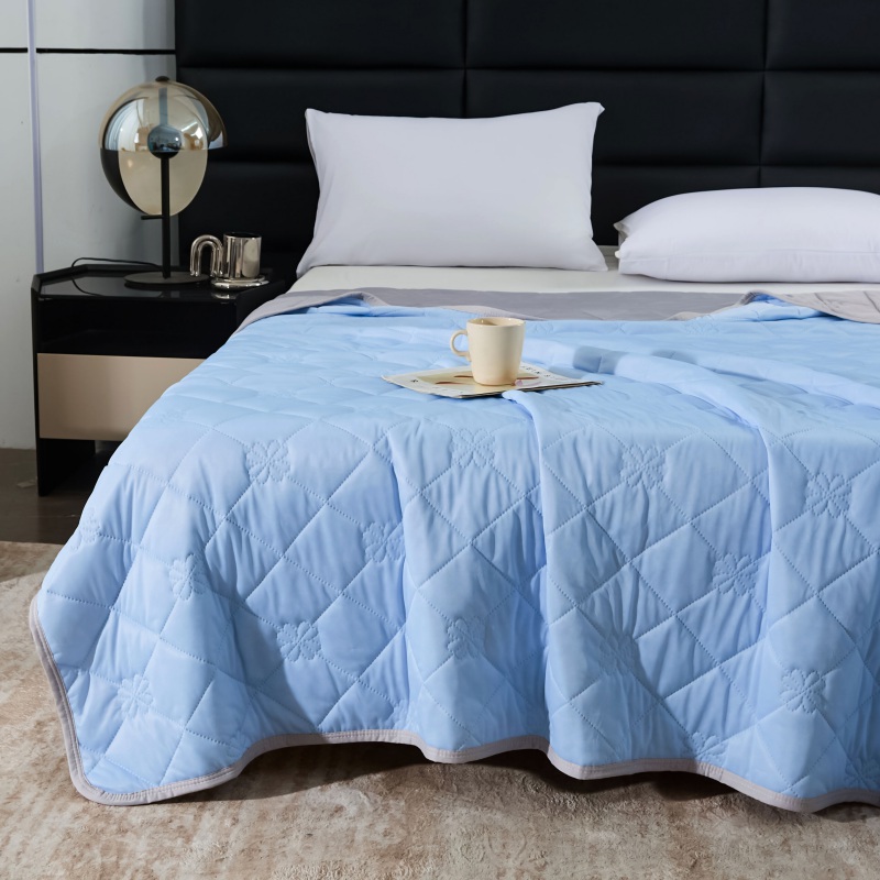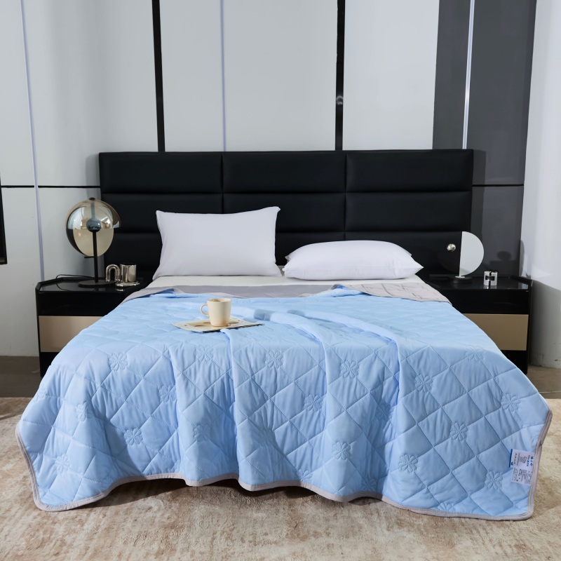 亚龙工厂店2025新款temu希音跨境外贸常年不断货薄荷丝冰淇淋凉感丝空调被 天蓝色配灰色(花纹款)