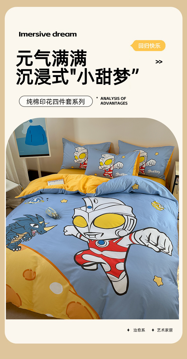 当前位置: 91家纺网 > 商品网购 > 床品套件 > 四件套 > 全棉普通四件套 > 金爱家 2025新款纯棉数码印花系列四件套-奥特曼 D-奥特曼之光