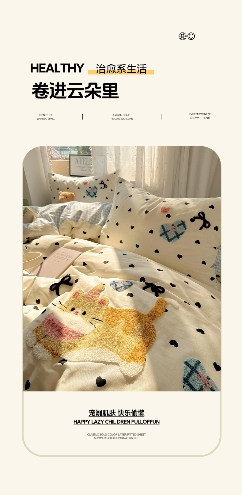 (总)澳梵家居 2025新款小清新全棉印花毛巾绣四件套
