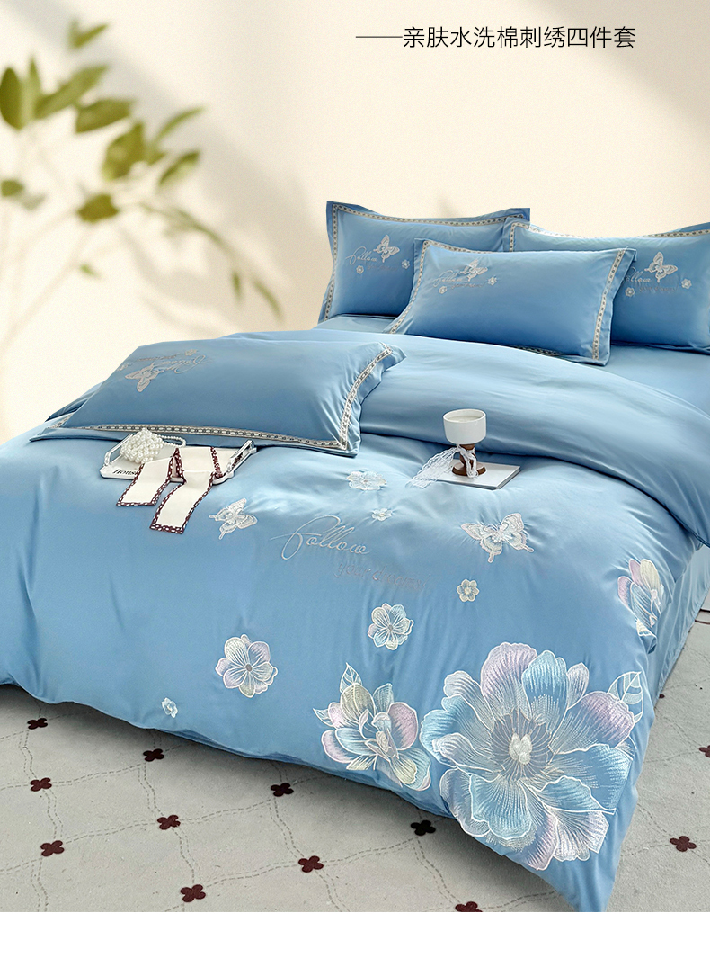 当前位置: 91家纺网 > 商品网购 > 床品套件 > 四件套 > 水洗棉四件套 > 佳宇轩 2025新款亲肤水洗棉刺绣四件套系列 牡丹-湖蓝