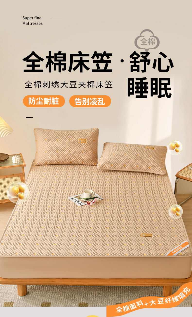 • 91家纺网 家纺一手货源 找家纺 鑫钰 2025新款防水隔尿全棉纯棉大豆夹棉刺绣床笠直播热款 鑫绣阁-星云紫(防水款)