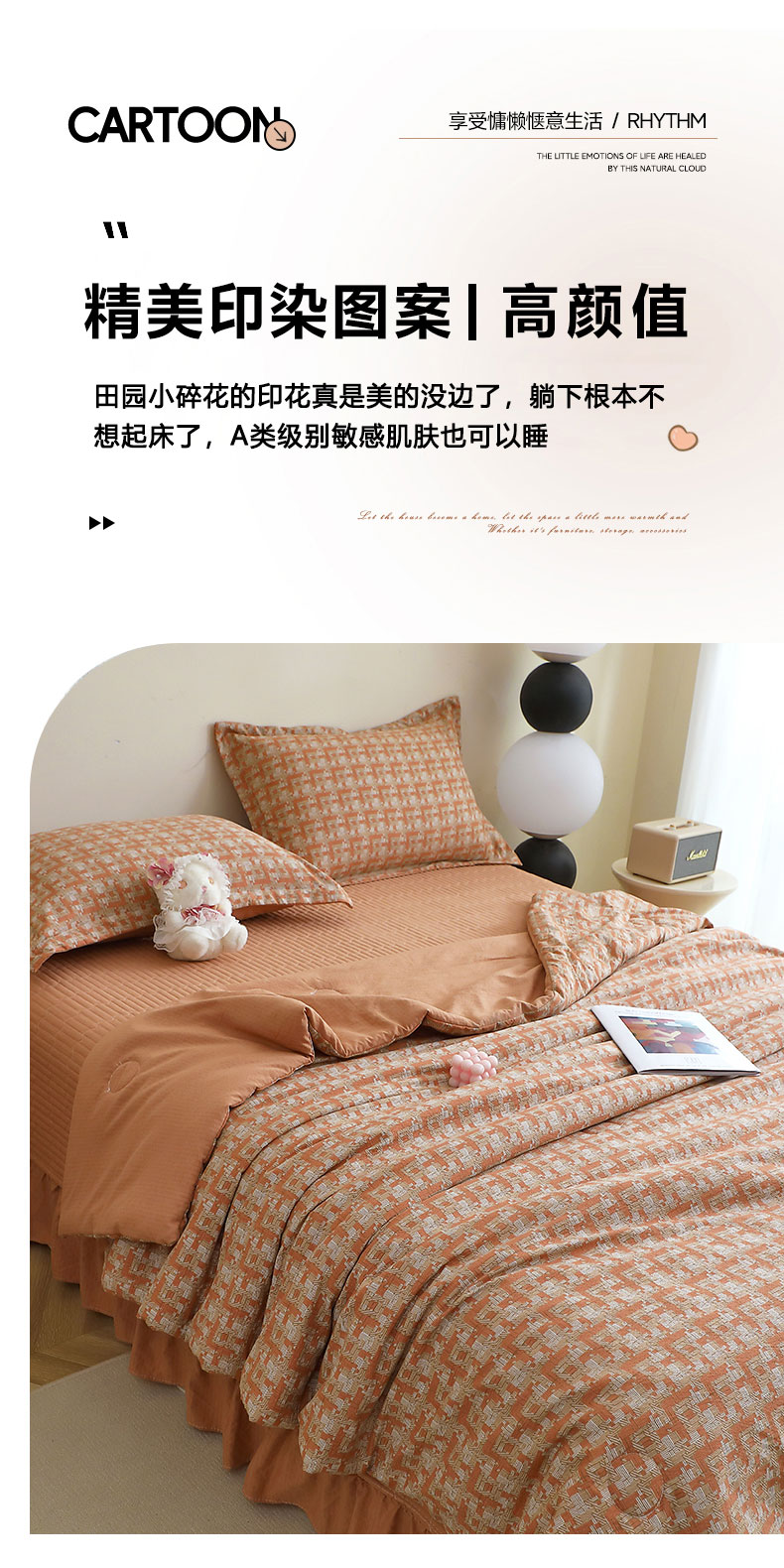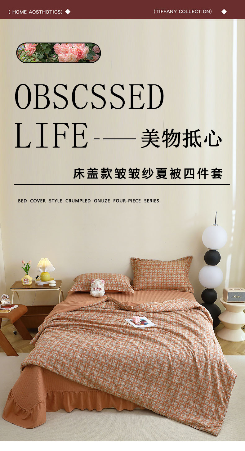 人人爱家纺 2025新款皱皱纱床盖夏被四件套 罗曼