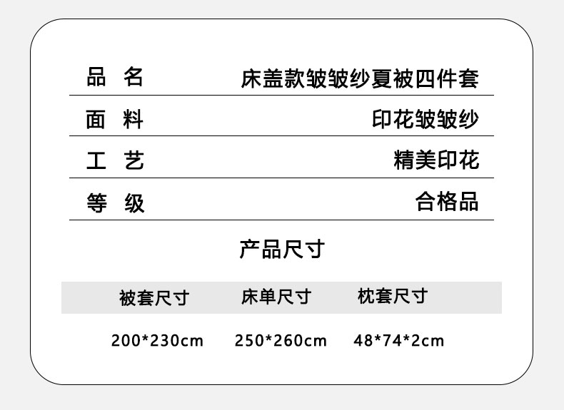 商品名称:人人爱家纺 2025新款皱皱纱床盖夏被四件套 罗曼