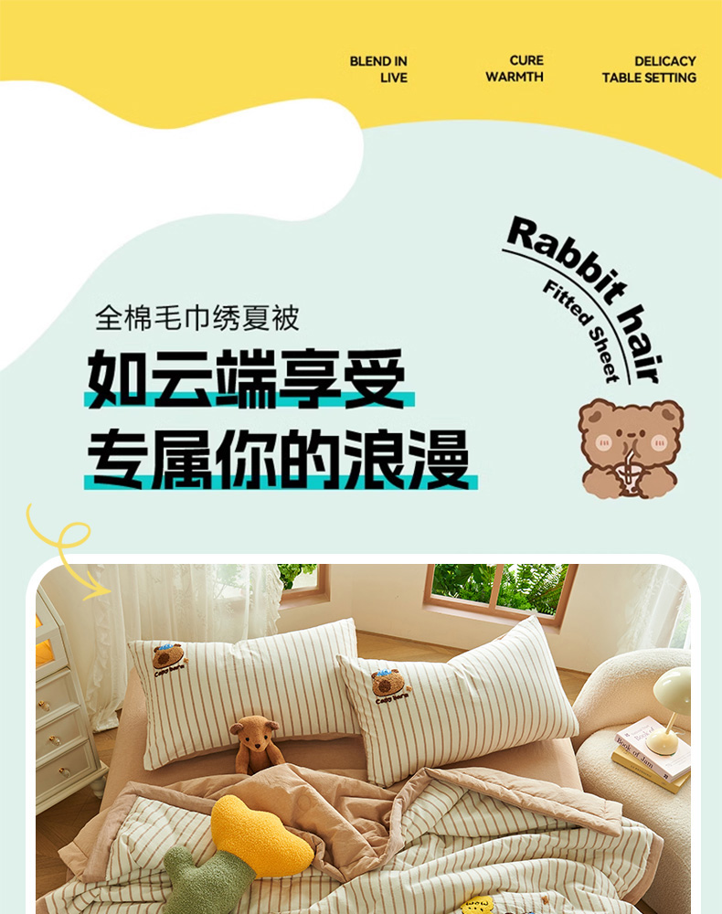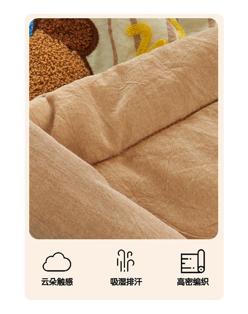 • 91家纺网 家纺一手货源 找家纺 徕米家居  2025新款色织全棉纯棉绣花夏被夏凉被空调被四件套 开心KT