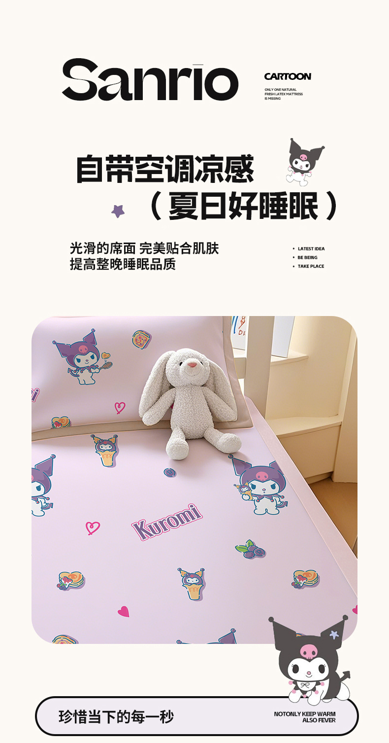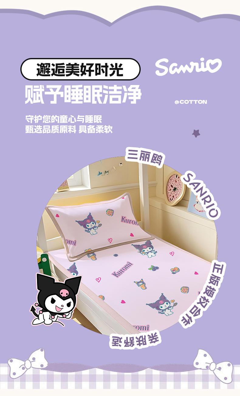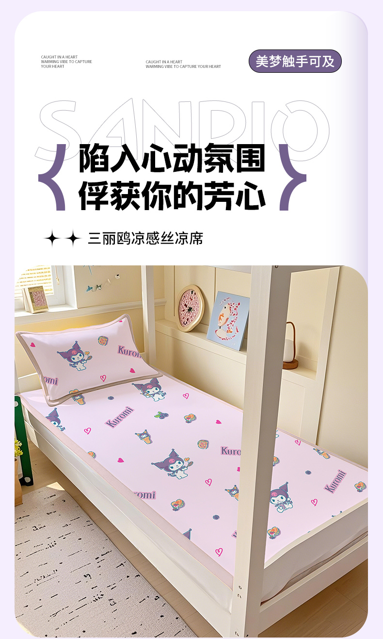 商品名称:博雅 2025春夏新款学生宿舍床三丽鸥冰丝凉席席子 多彩库洛米