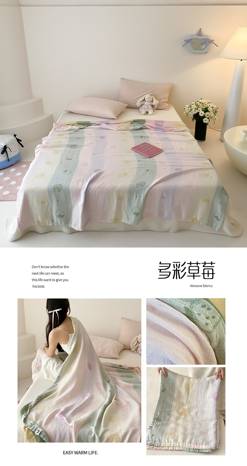 商品名称:麻依 2025新款色织提花天丝棉冷感毯系列 多彩草莓