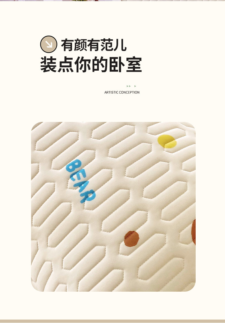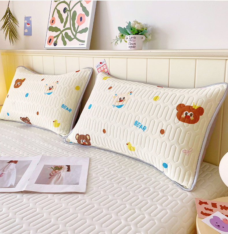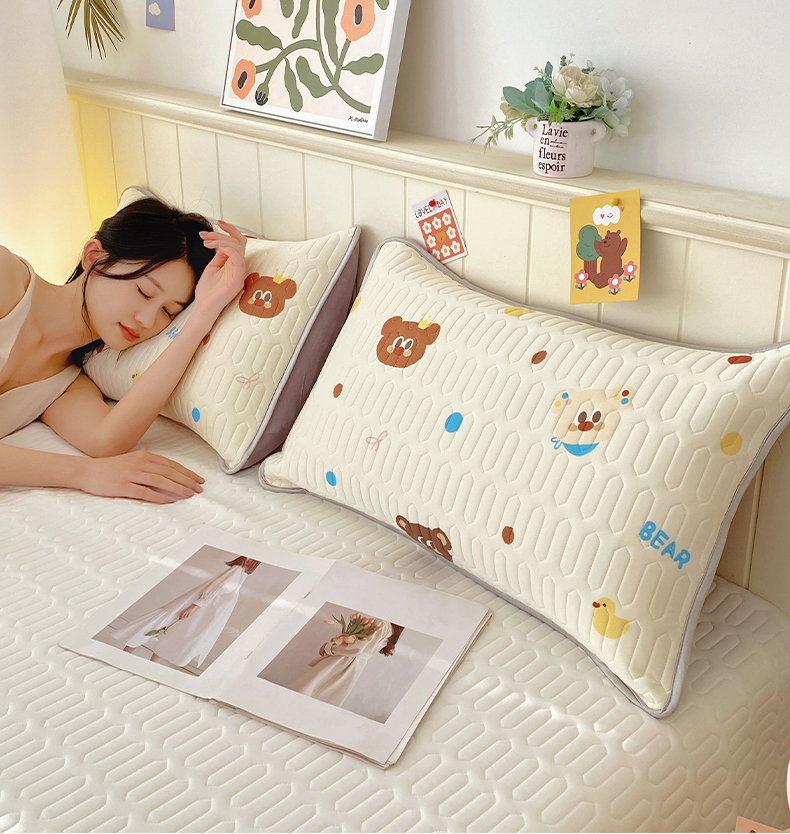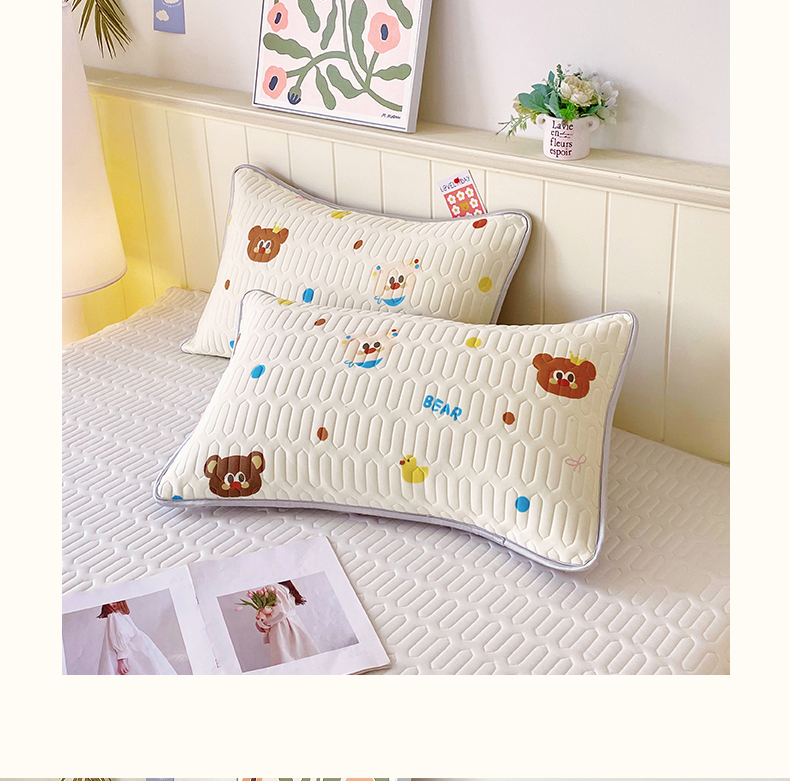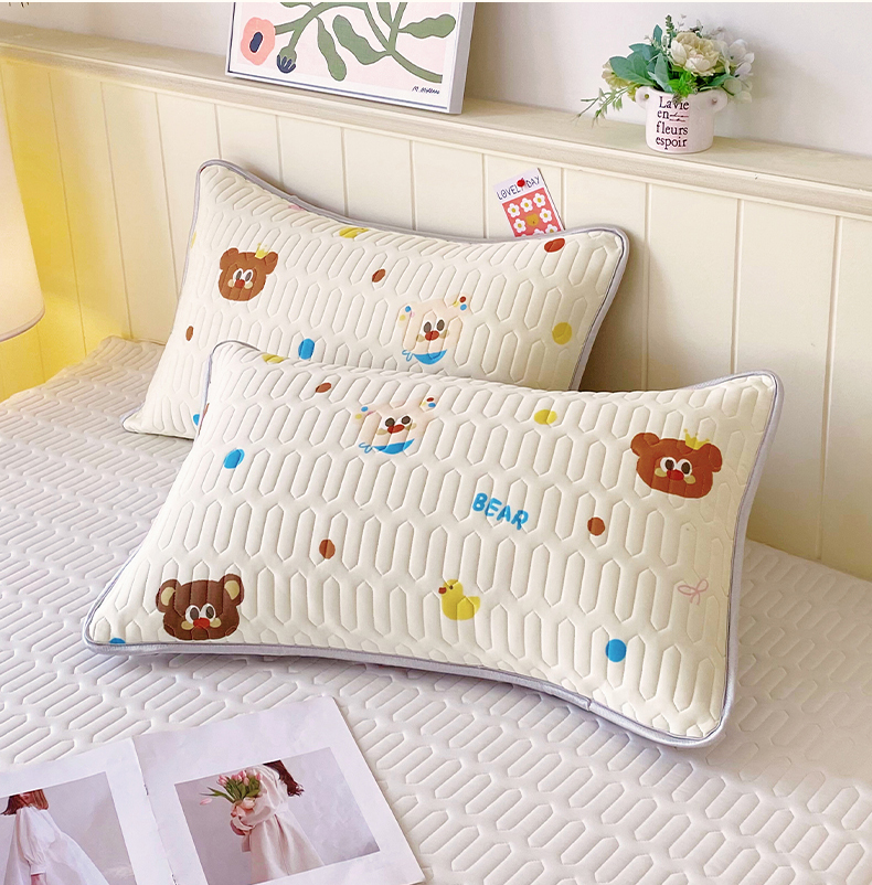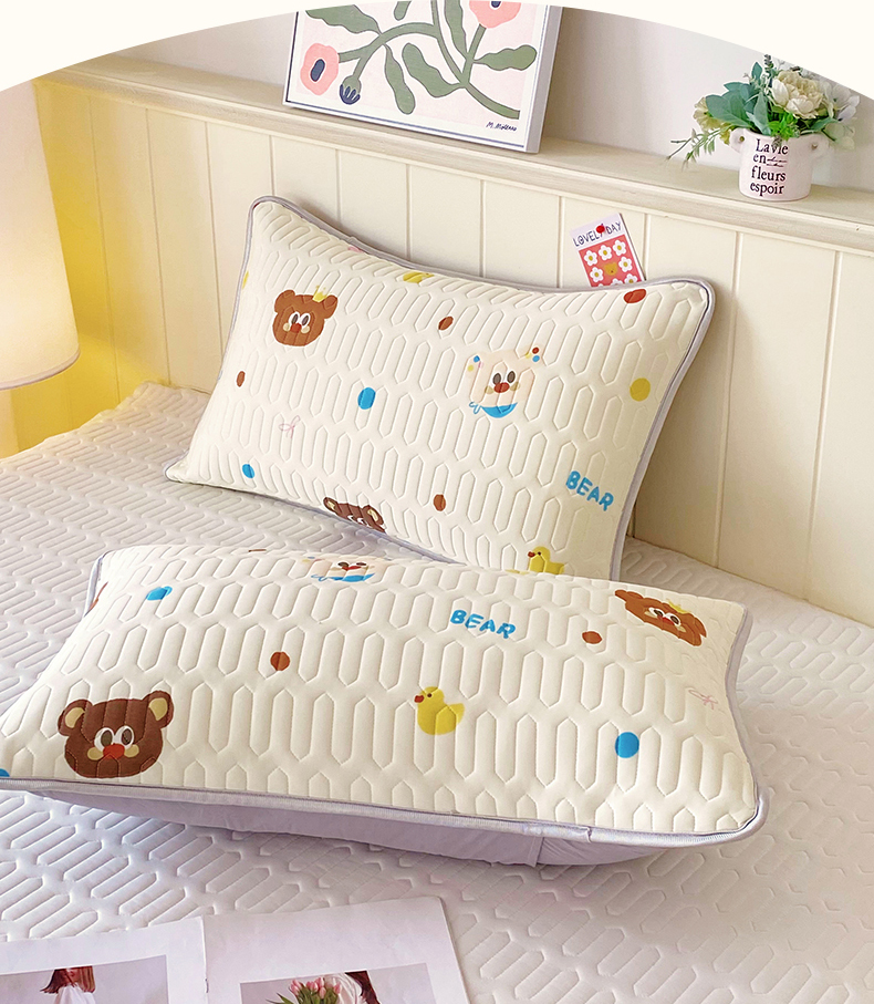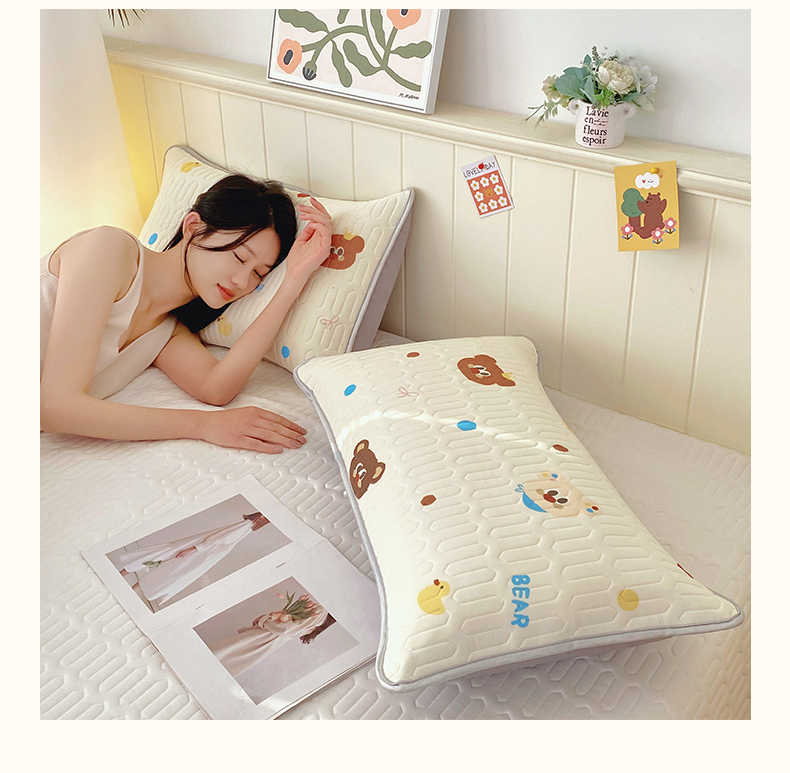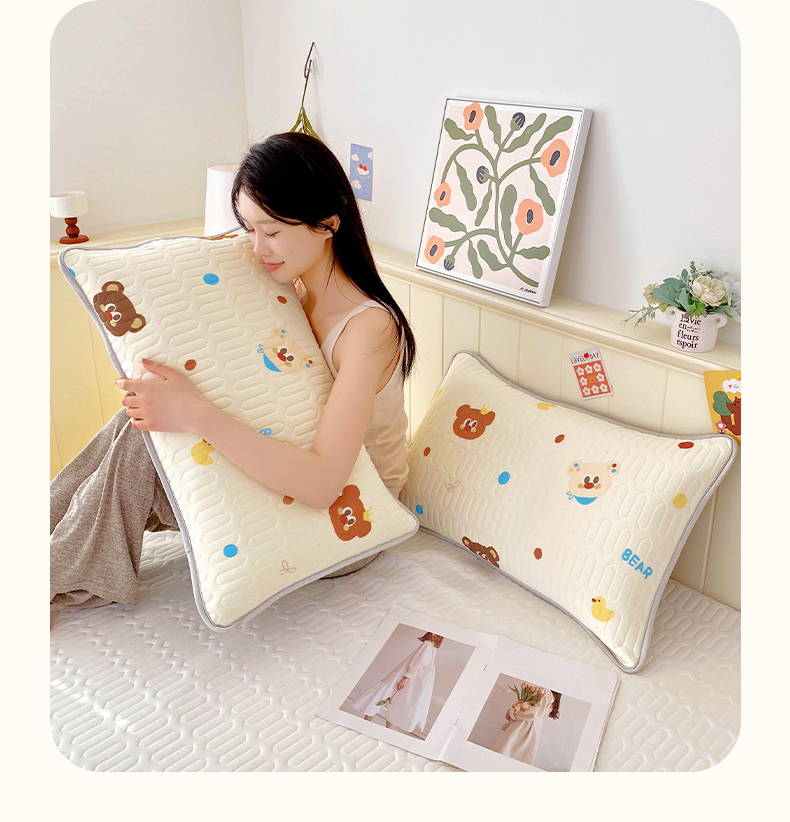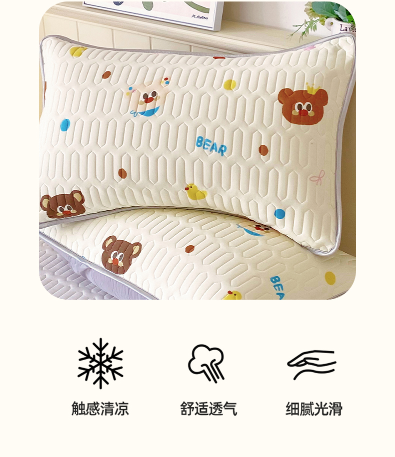 雨彤家纺 2025年新款A类凉感丝乳胶单人枕套 熊熊乐园-米黄