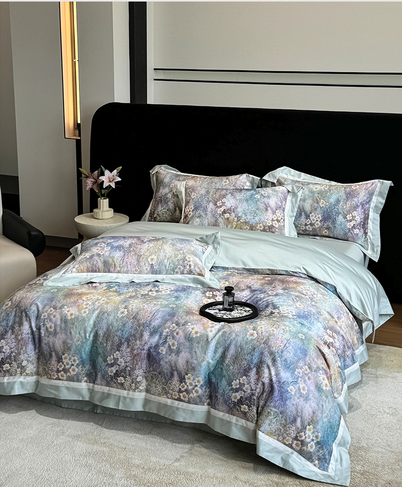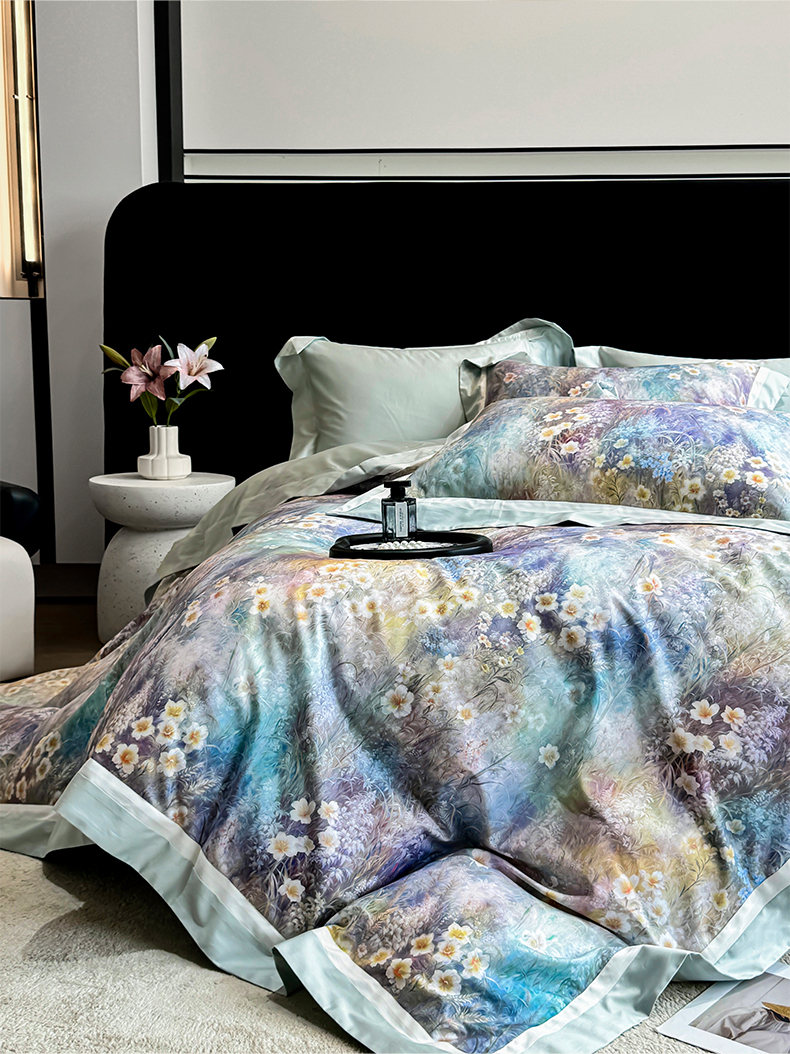 (总)禾时 2025新款100S长绒棉纯棉数码印花双拼角四件套-自然逸梦-绿